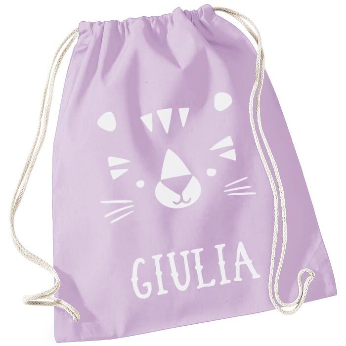 Semplice ma super utile sacca zainetto per la scuola personalizzata con il nome del bambino e la simpatica sagoma di un tigrotto. Realizza lo zainetto perfetto per la scuola materna, l’asilo nido o per lo sport, il corso di musica, il catechismo del tuo bambino…