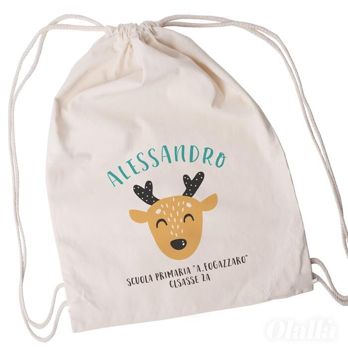 Borsa zainetto da scuola materna, adatta anche per le scarpine da ginnastica o altro materiale scolastico o sportivo. Cotone 100%. Tessuto spesso 140 gr.