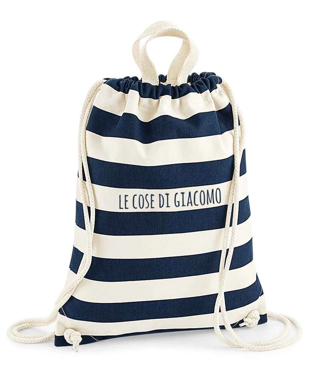 Cosa rende la Sacca Zainetto da Ginnastica A Righe Blu, Personalizzabile con Frase, unica?
