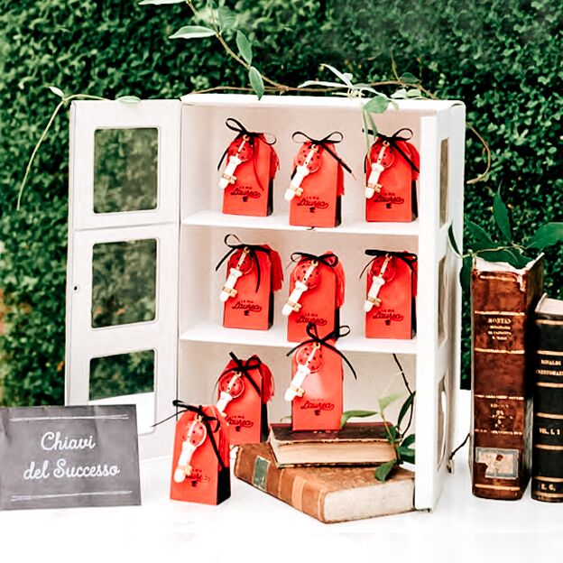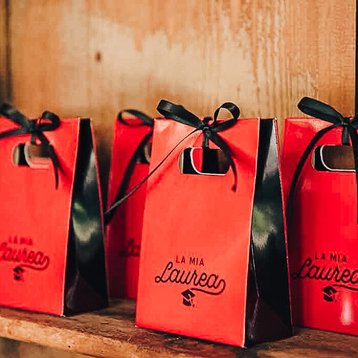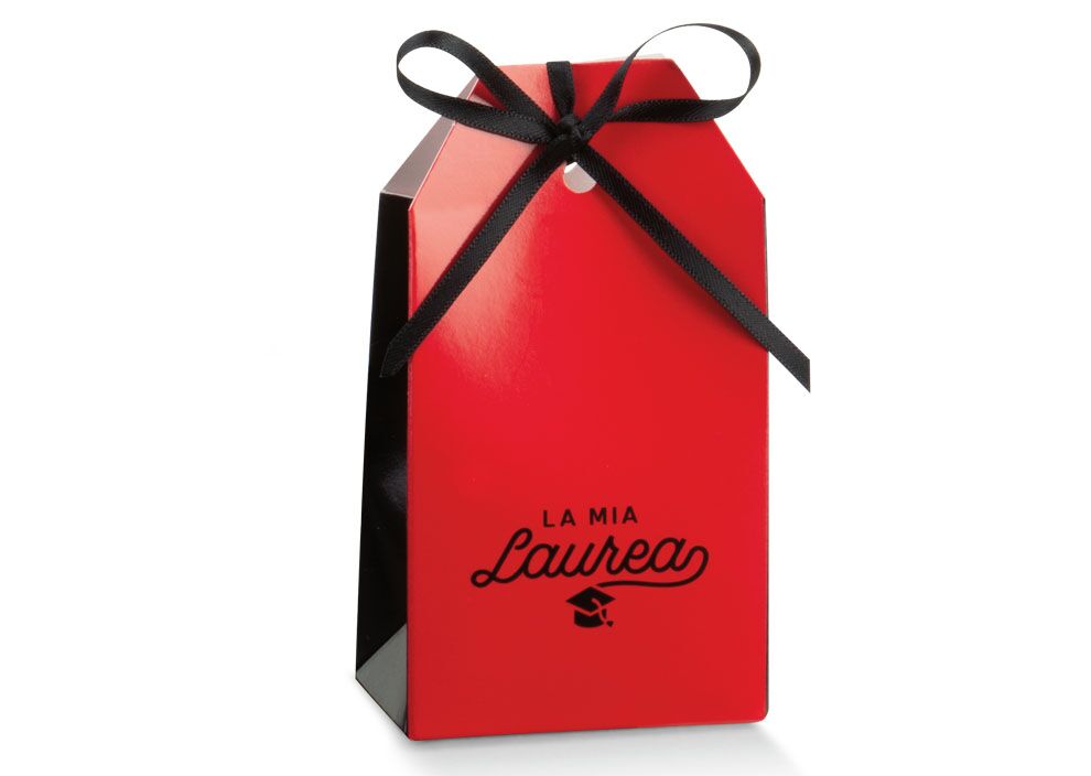 Splendido set di 10 sacchettini in cartoncino rosso a forma di libro con scritta “La mia Laurea”. Perfetti per contenere confetti, praline e dolcetti per la bomboniera della tua laurea.