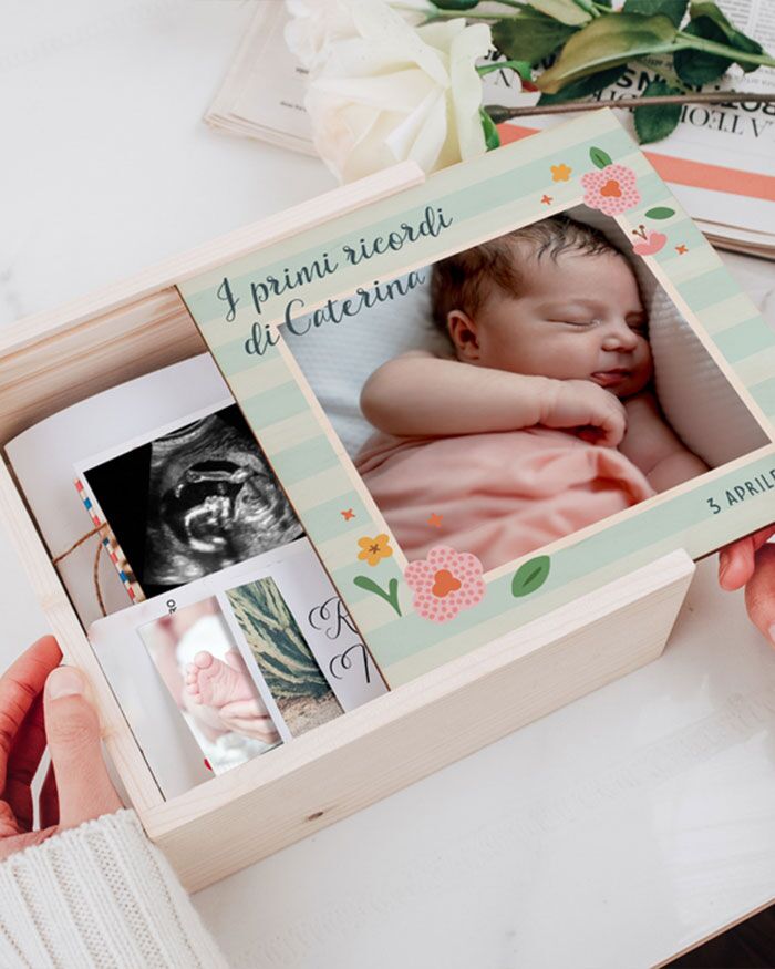 Una bellissima memory box per raccogliere tutti i ricordi della nuova bambina appena arrivata. La scatola è personalizzabile con una foto e una dedica sul coperchio ed è perfetta come regalo per la tua amica che ha appena avuto una bimba oppure per una neomamma. Puoi metterci dentro di tutto, le prime scarpine, la prima ecografia, i primi momenti passati assieme…Tutti questi ricordi potranno essere raccolti dentro questa “capsula del tempo” che i genitori possono comporre insieme per creare un ricordo indelebile della bimba appena arrivata.