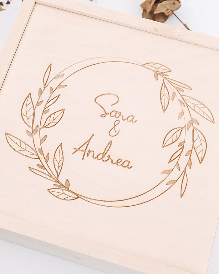 Scatola Personalizzabile Box Ricordi con nome della coppia inciso per un perfetto regalo d’anniversario. Raccogli i ricordi più belli di una storia d’amore lunga tutta la vita e conservali in questa stupenda scatola in legno.