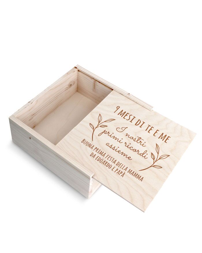 Puoi personalizzare il coperchio della scatola con una dedica speciale: il nome del bambino, una data significativa o una frase piena d’amore. L’incisione laser garantisce precisione e durata nel tempo, per un risultato raffinato ed emozionante.