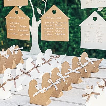 Splendido set di 10 Scatoline in cartoncino a forma di uccellino, perfetta per contenere i confetti, le caramelle o piccoli oggettini. Perfette come bomboniera per il tuo matrimonio, per un battesimo e per tutte le tue cerimonie oppure come bellissimo segnaposto. Disponibile in color Bianco.