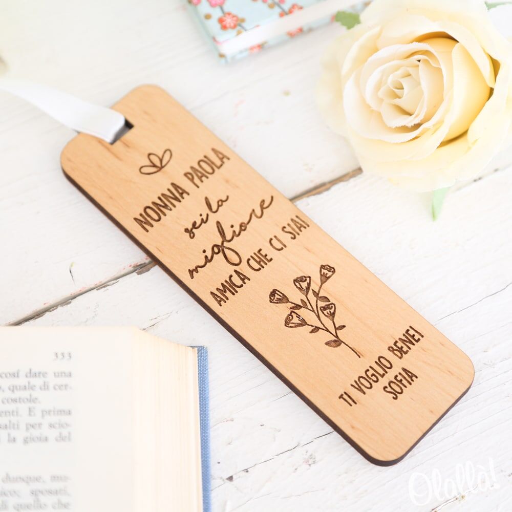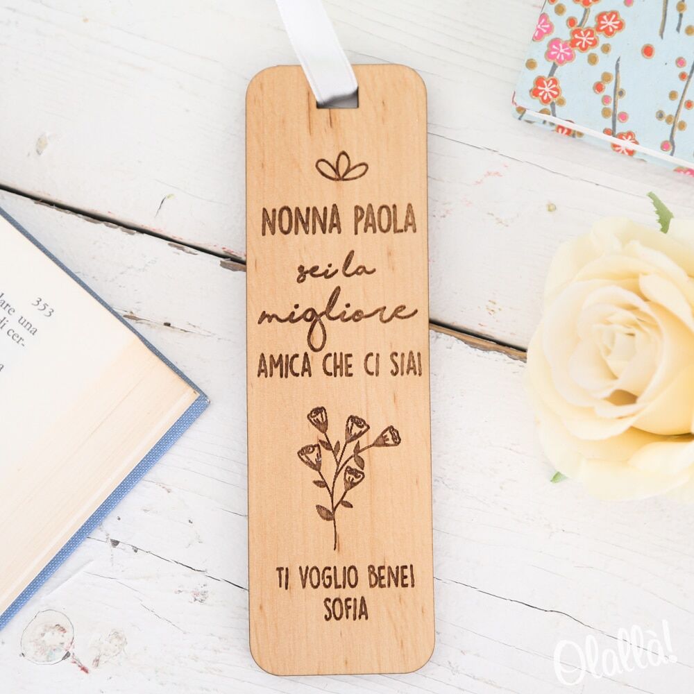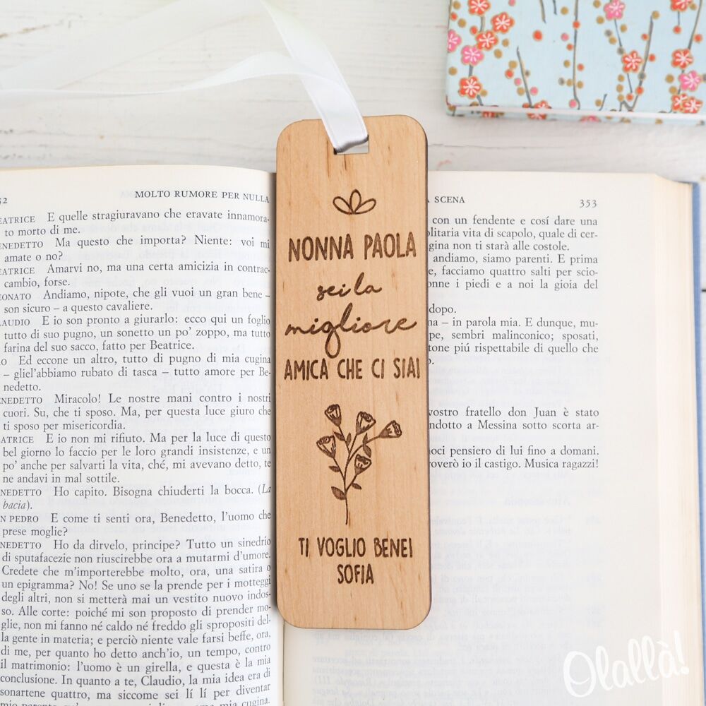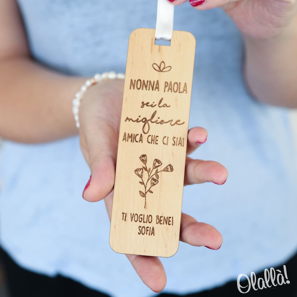 Segnalibro in legno spesso 5 mm realizzato artigianalmente in Italia. Garantiamo che l’intero ciclo produttivo è eseguito in Italia.