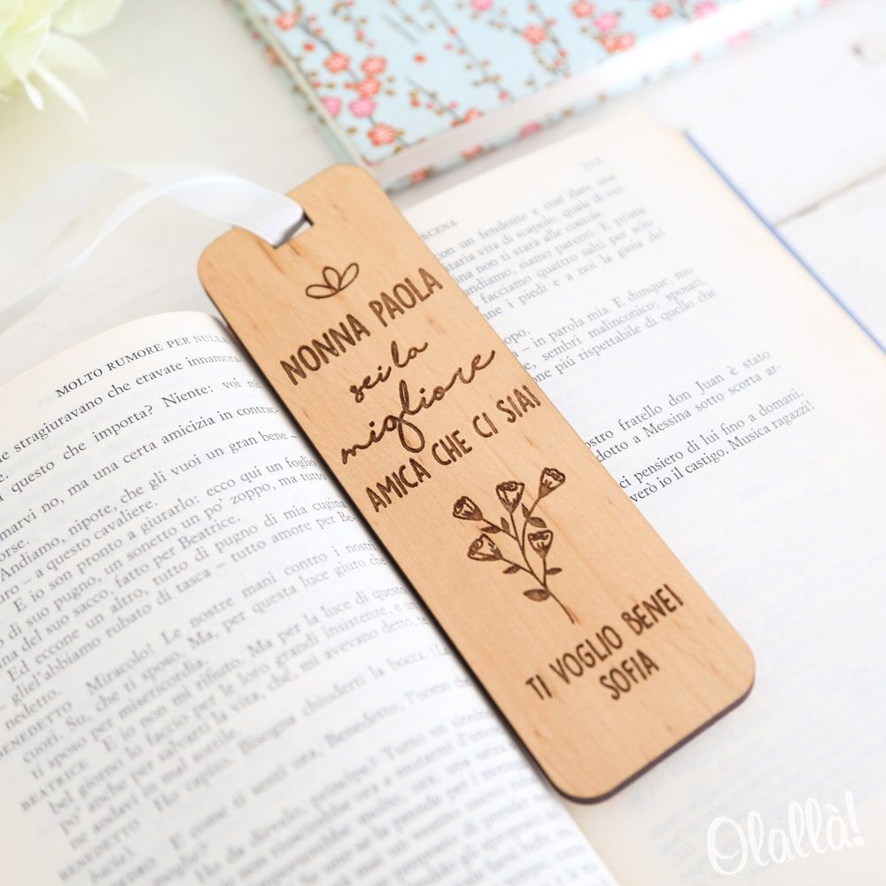 Questo segnalibro è un prodotto interamente made in Italy, di dimensioni 12×3,5 cm, spesso 5 mm. L’incisione sulla superficie è effettuata tramite laser, ed è personalizzabile a tuo piacimento. Puoi quindi decidere di lasciare la frasi proposte, modificarle o di inserire la citazione del tuo libro preferito sul retro. Il nostro grafico sarà a tua disposizione.