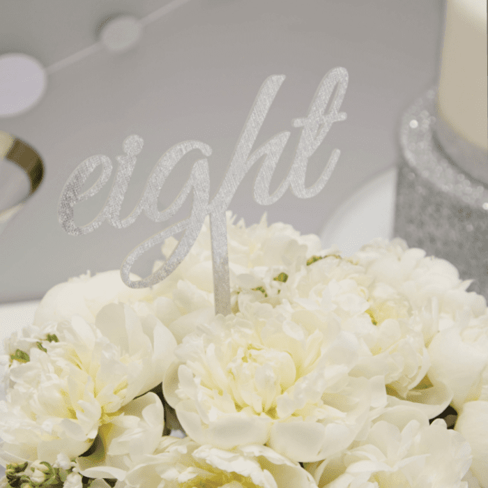 Assicurati che i tuoi ospiti trovano facilmente il proprio posto a sedere con questi numeri da tavolo d’argento molto eleganti. Ogni numero è realizzato in acrilico e farà risaltare ogni tavolo nel tuo grande giorno. Questi segnatavola sono perfetti per essere posizionati al centro oppure per essere inseriti in composizioni floreali.