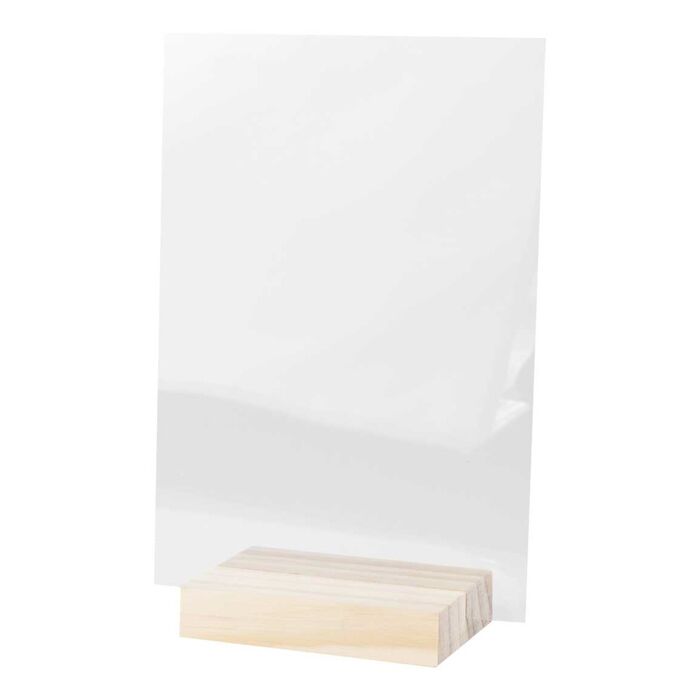 Con questo semplicissimo segnatavola in acrilico con supporto in legno puoi personalizzare l’arredamento del tuo matrimonio. E’ perfetto per scrivere messaggi personalizzati, oppure scrivere i numeri delle tavole delle tue nozze.