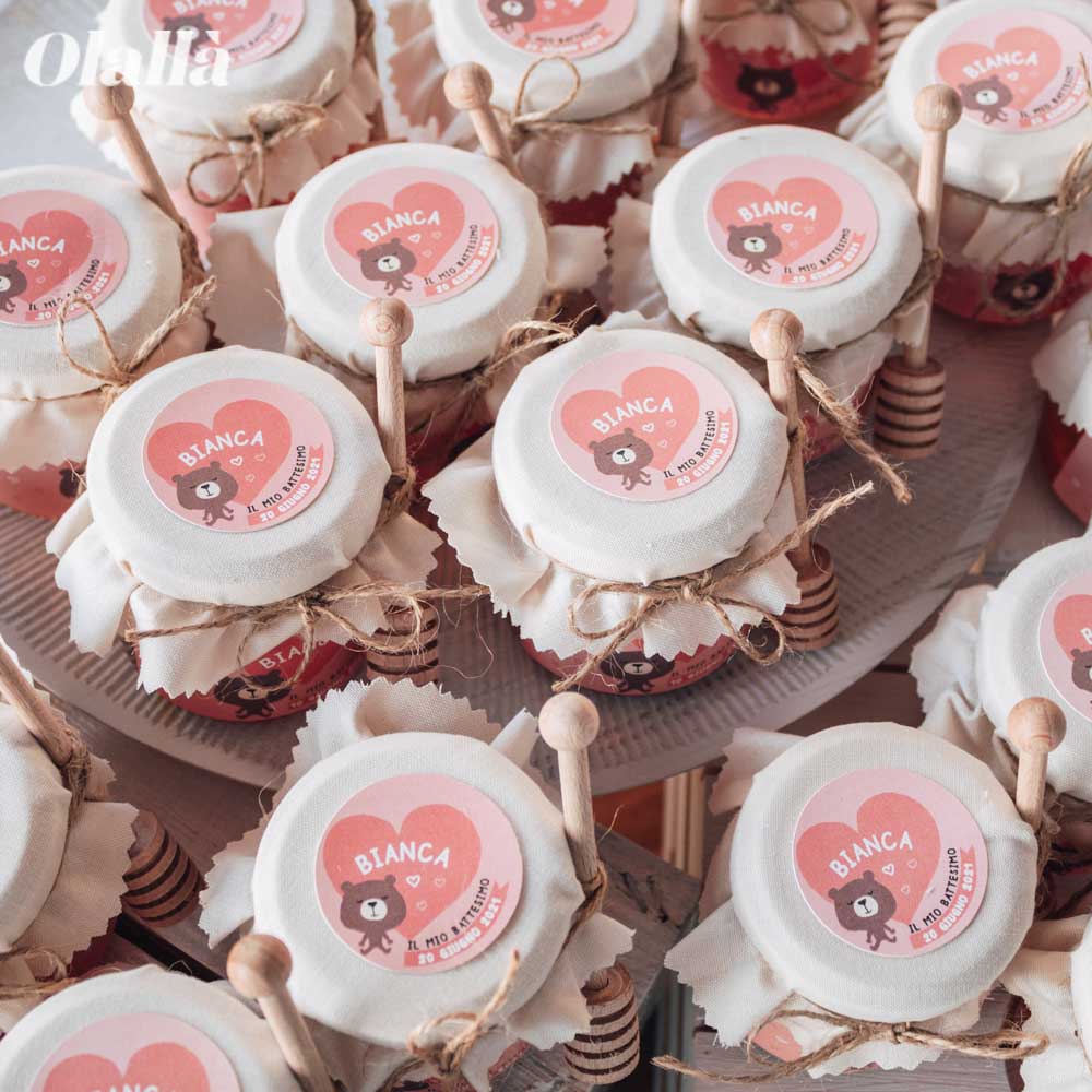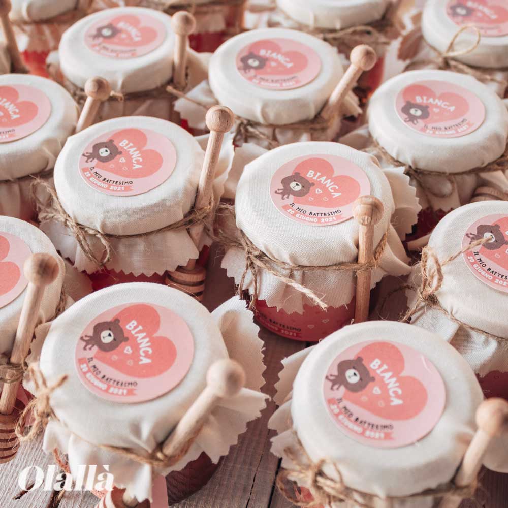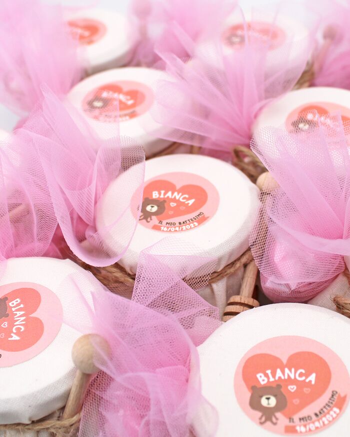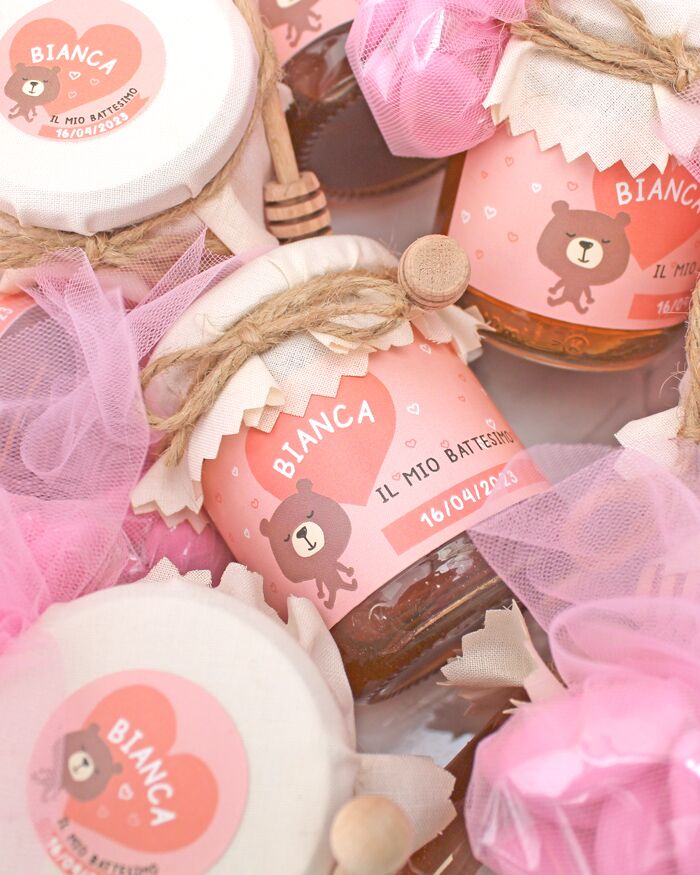 9 recensioni per Vasetti di Miele 125 gr con Etichetta Rosa Personalizzata con Orsetto – Idea Bomboniera per Battesimo