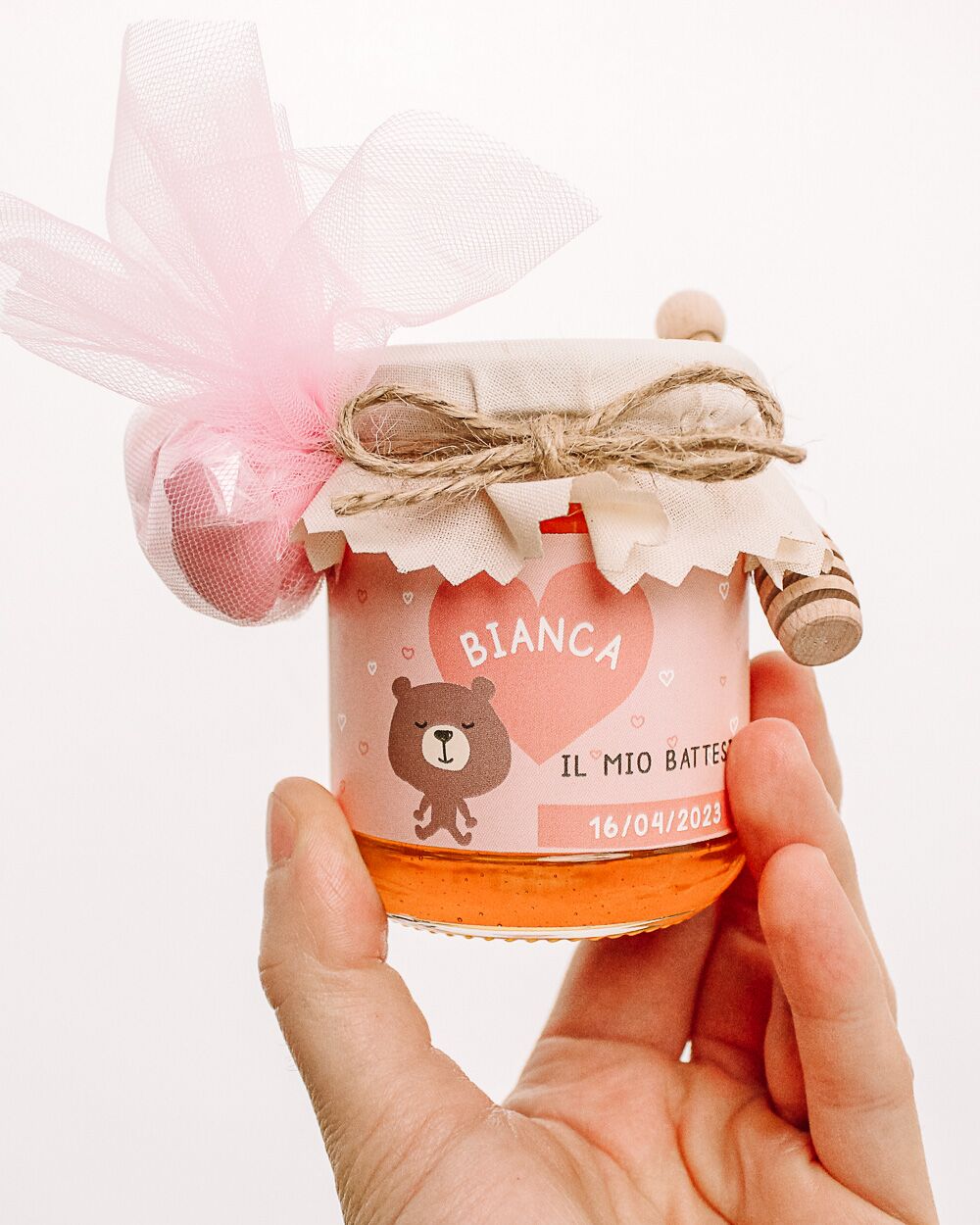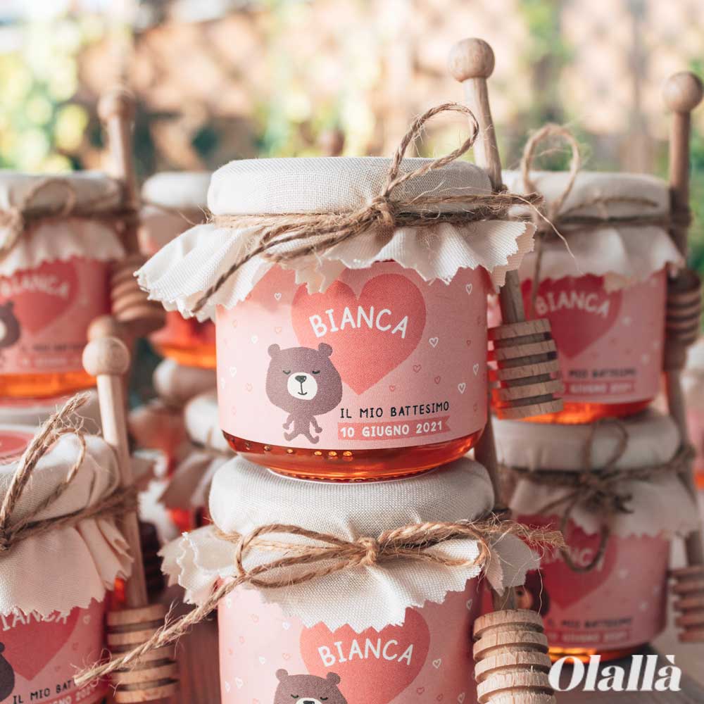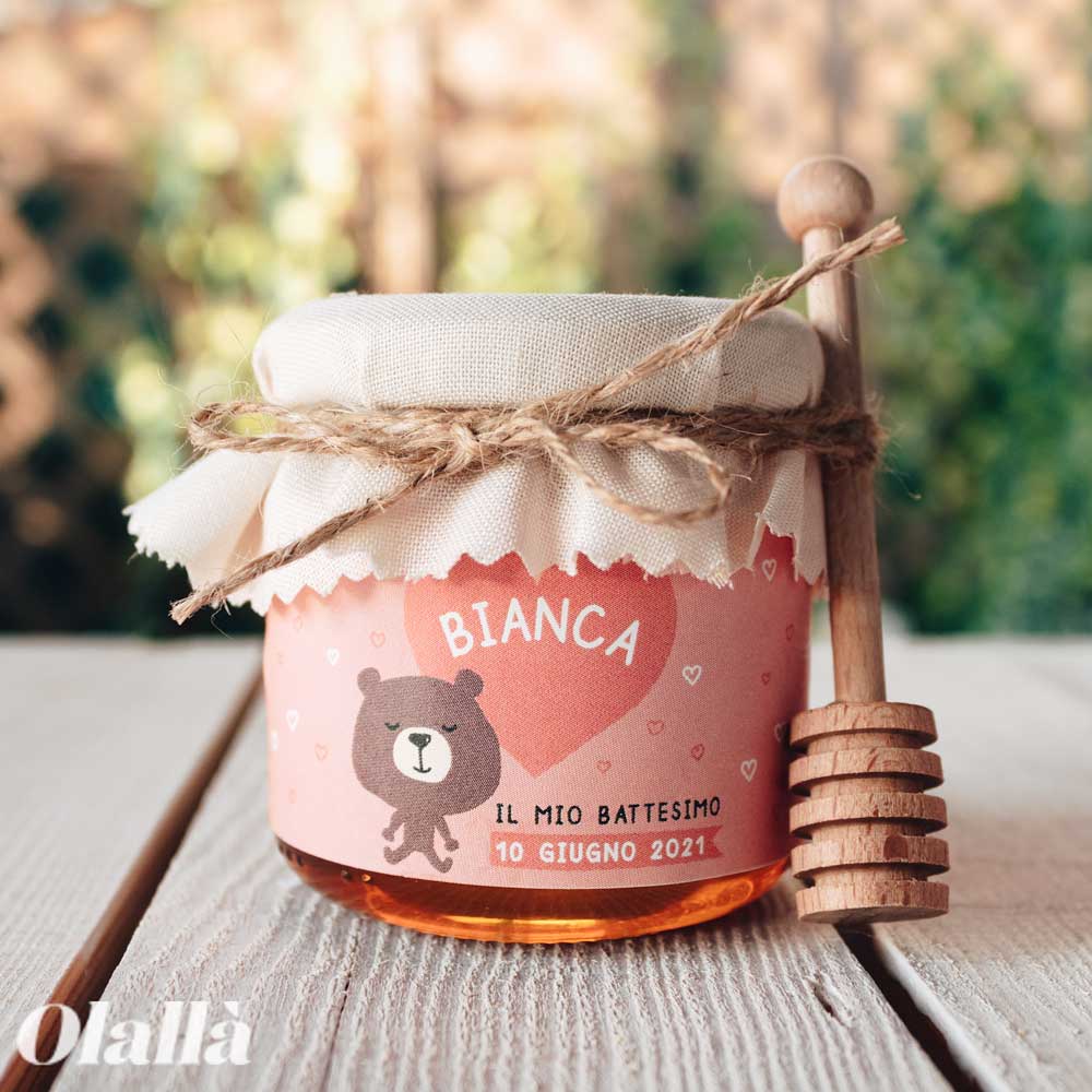 9 recensioni per Vasetti di Miele 125 gr con Etichetta Rosa Personalizzata con Orsetto – Idea Bomboniera per Battesimo