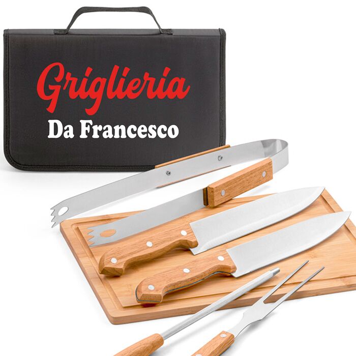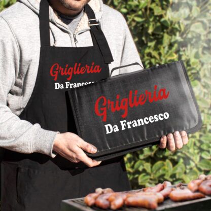 Stupisci il tuo papà del cuore o un caro amico amante del barbecue con questo incredibile set personalizzato contenente tutto l’occorrente per il barbecue! Il destinatario di questo regalo sarà molto fiero della sua valigetta personalizzata, grazie alla quale potrà dare sfogo a pieno titolo alle sue abilità culinarie alla griglia!