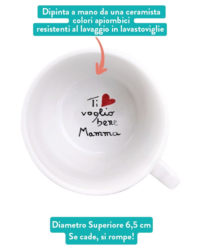 I cuoricini all’esterno e interno della tazzina sono opzionali. Se desideri che vengano dipinti scrivi “(cuoricino)” laddove lo desideri. Il tuo ordine viene letto da un’artigiana, non un computer! Puoi anche scegliere il colore del cuoricino ed indicarlo di lato. Ad esempio: SCRITTA SUL FONDO DELLA TAZZINA: “Ti Amo! ( cuoricino rosso)”. SCRITTA ALL’ESTERNO DELLA TAZZINA: “(qualche cuoricino rosso)”. Se invece di un cuoricino, preferisci un’altro simbolo (una stellina ad esempio) puoi indicarla sempre nello stesso modo. Se la ceramista avesse difficoltà a riprodurre quanto indicato ti verrà notificato prima che il tuo ordine venga accettato