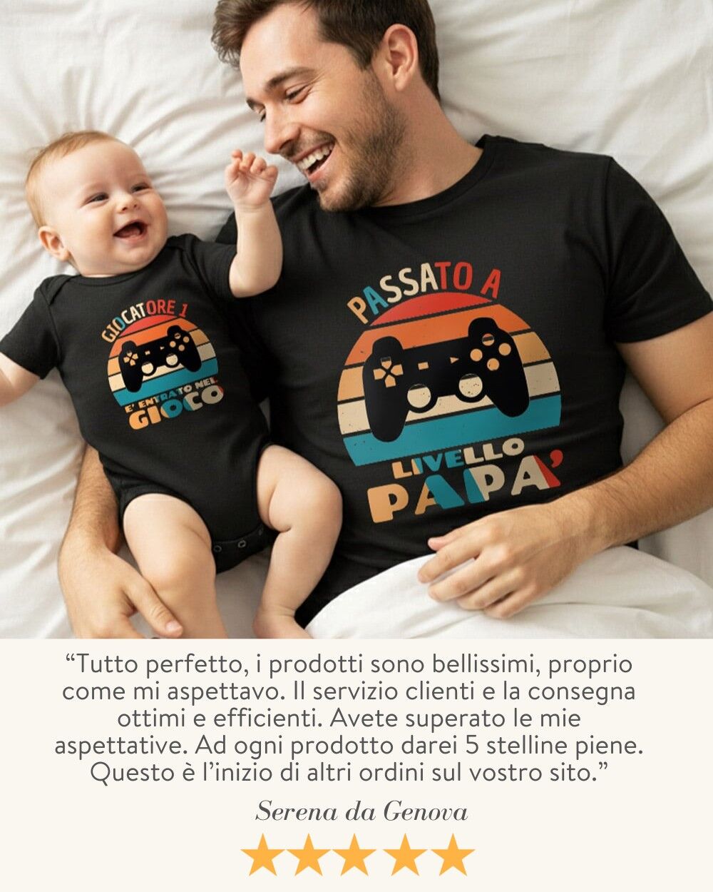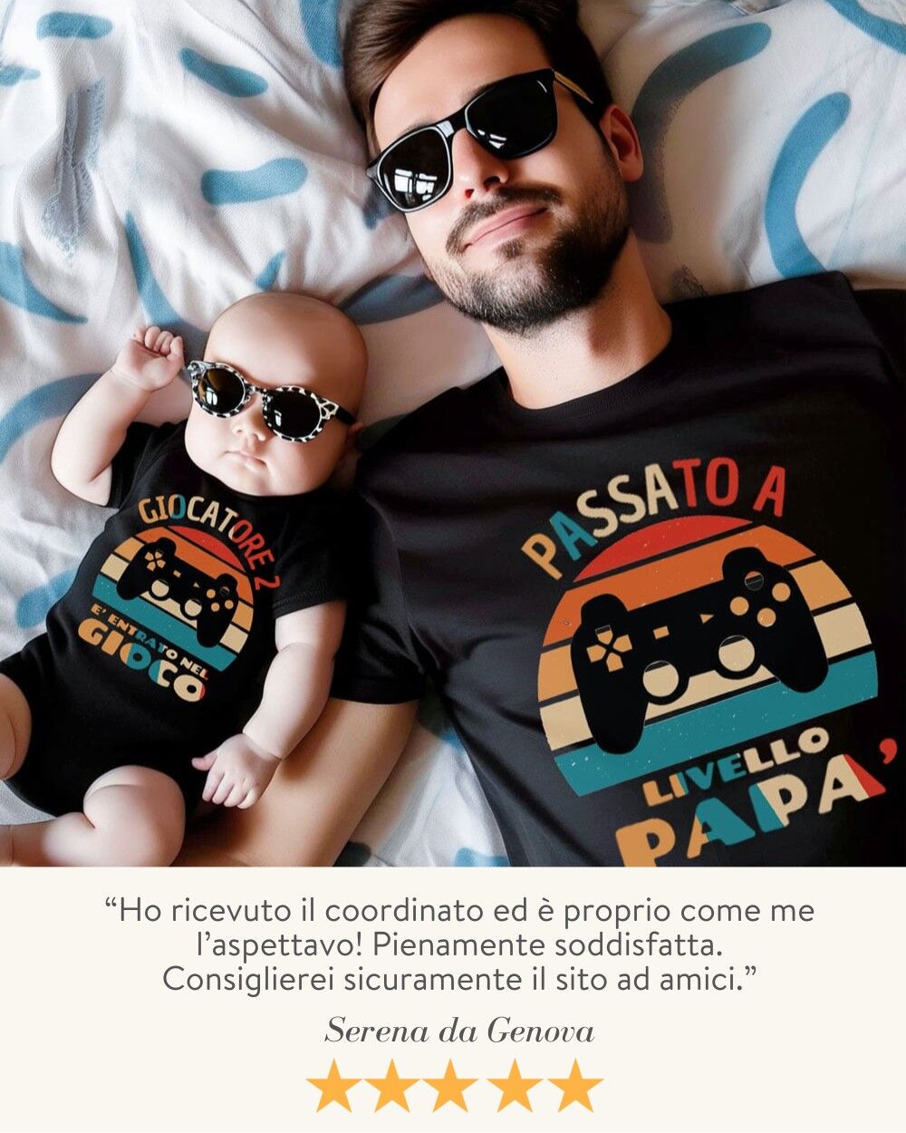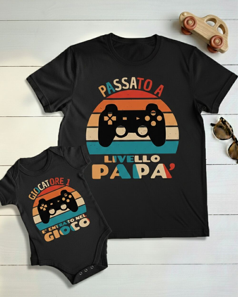 Sorprendi un super papà con un regalo originale, emozionante e divertente! Il nostro set coordinato body/t-shirt “Passato a Livello Papà” è l’idea perfetta per celebrare il legame unico tra padre e figlio, con una grafica irresistibile ispirata al mondo dei videogiochi. Se lui è un appassionato gamer, questo set sarà un successo garantito!