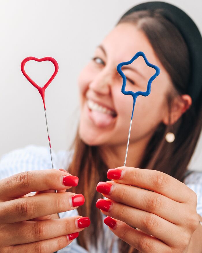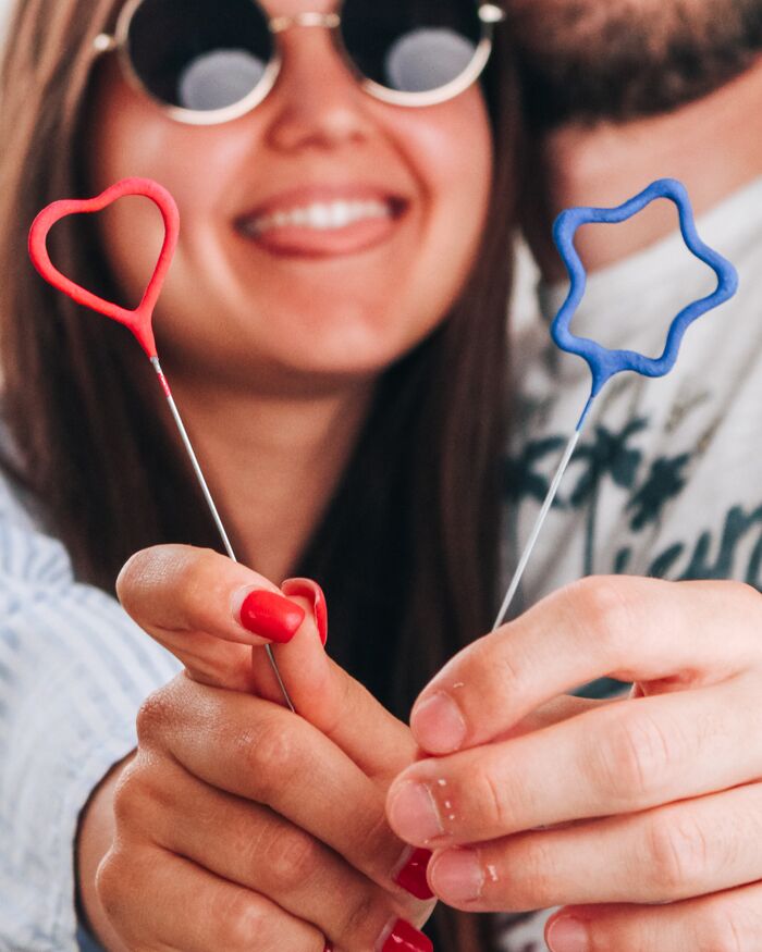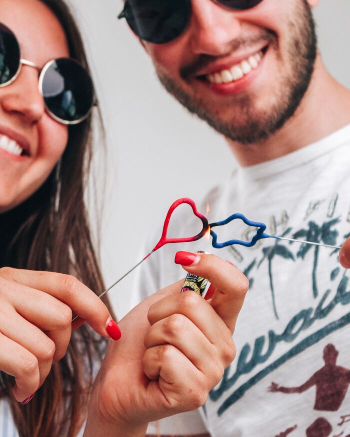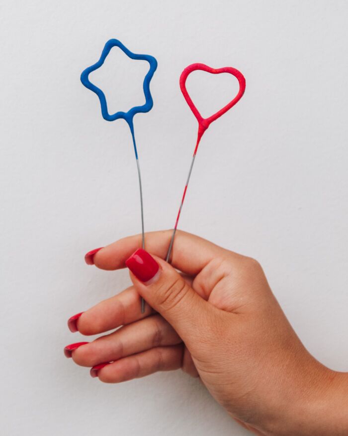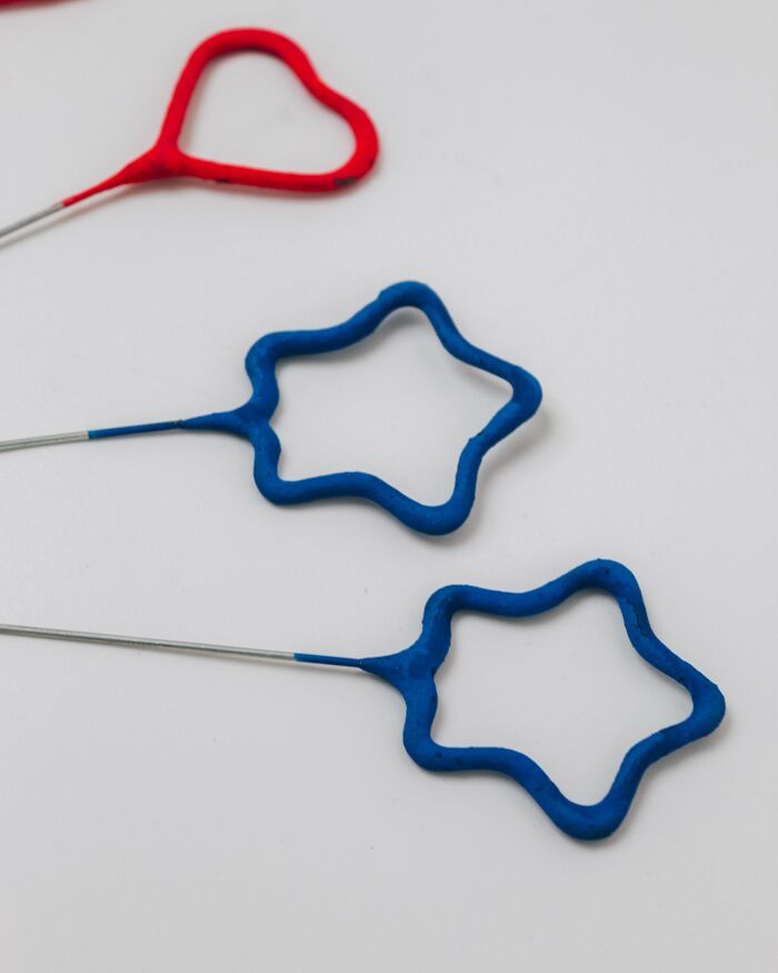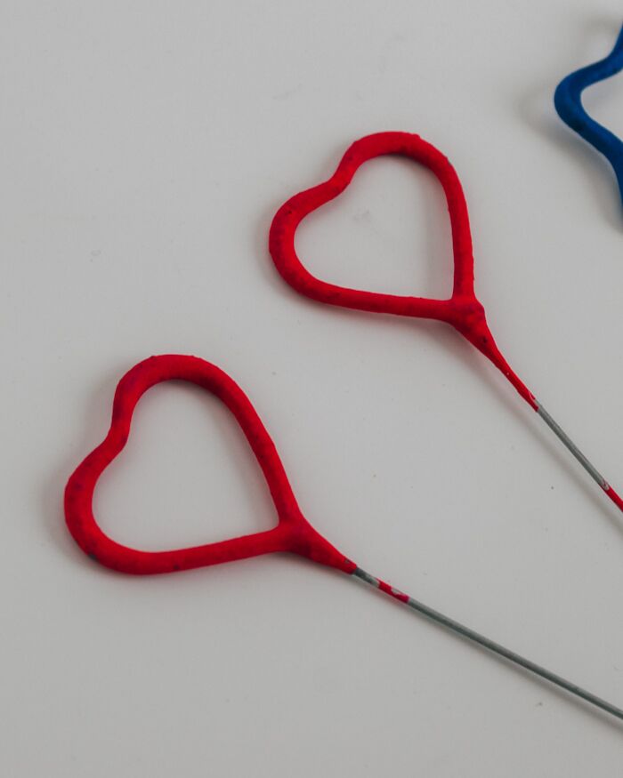 Ogni confezione contiene 2 bengala a stella e 2 a cuore.