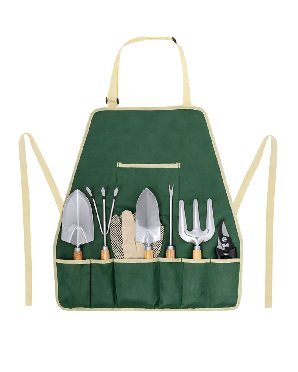 Prenditi cura del tuo giardino con stile e praticità grazie a questo completo set da giardinaggio. Dotato di un grembiule multi-tasche, questo kit include tutti gli strumenti essenziali per coltivare piante, fiori e ortaggi in modo organizzato e comodo.