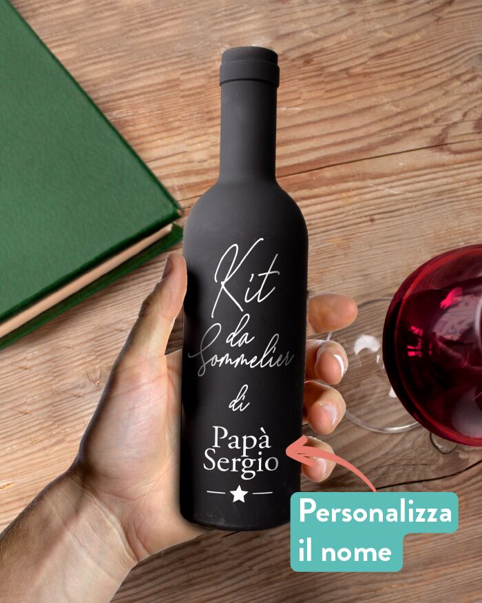 - STAPPATE UNA BOTTIGLIA DI VINO PREGIATA e preparati ad un’esperienza degustativa unica insieme al tuo papà, con questo kit da sommelier personalizzabile!