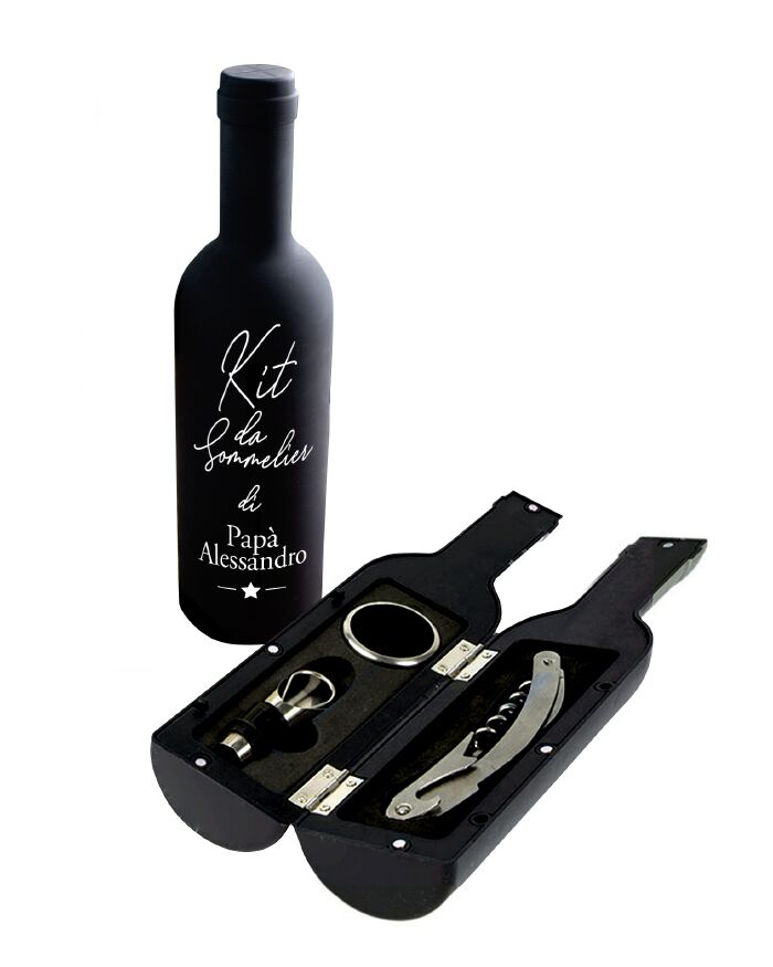 - PER IL PAPÀ CHE AMA IL VINO: un vero sommelier non può non avere in casa un set di accessori per il vino. Con questa elegante box da sommelier a forma di bottiglia di vino, personalizzabile con il suo nome, il tuo papà potrà replicare gli eleganti gesti di un vero e proprio sommelier professionista, per un’esperienza da ristorante stellato a casa vostra!