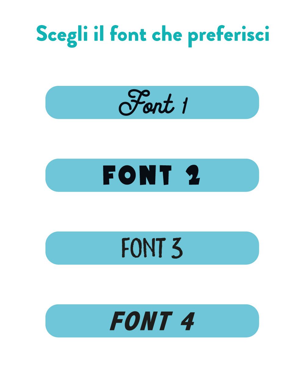 Fai riferimento alla galleria immagini per comporre la personalizzazione delle etichette: scegli il font, il colore e il simbolo delle tue etichette!