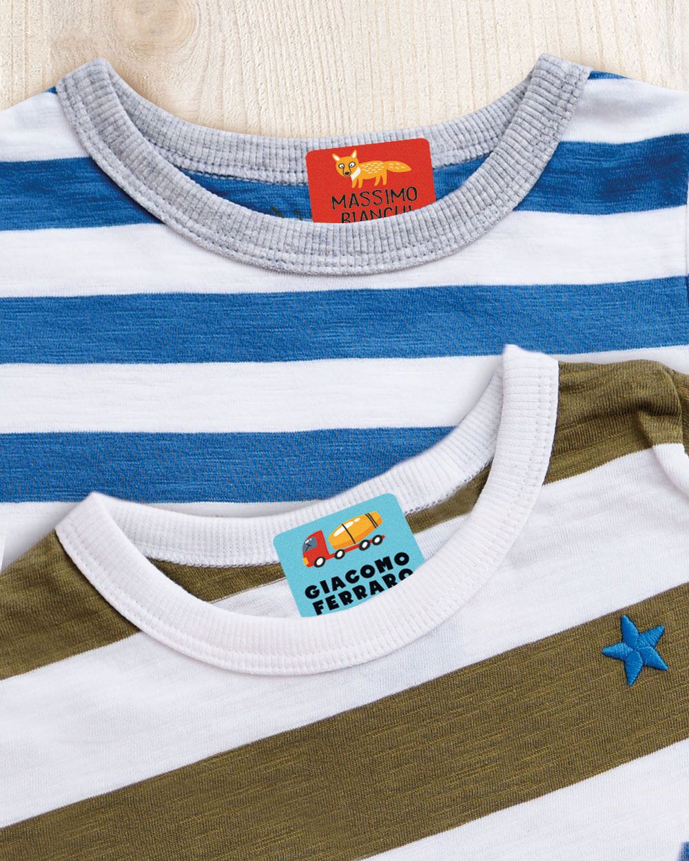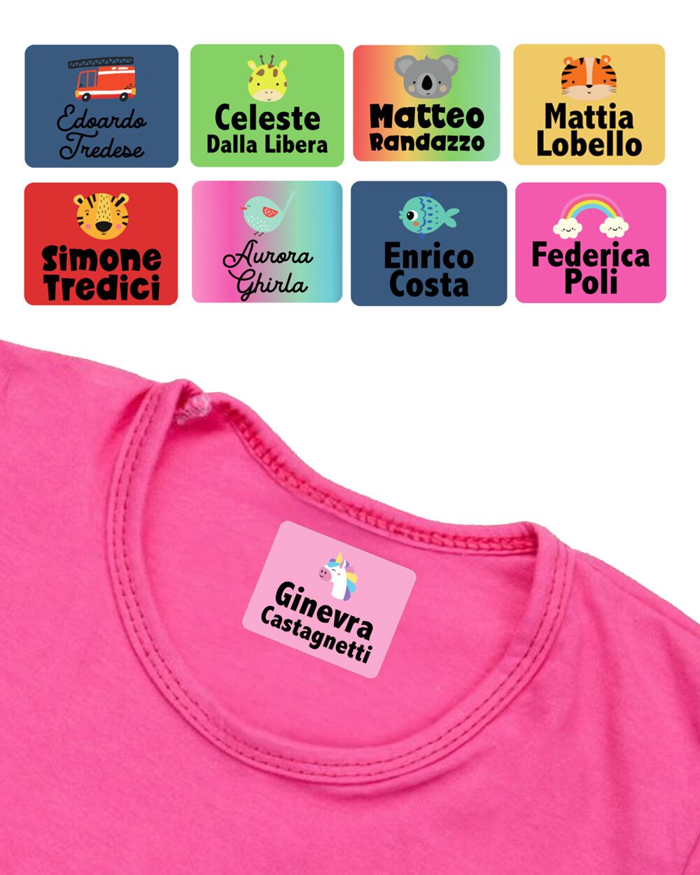 Rendere unico il guardaroba del tuo bambino non è mai stato così semplice con le nostre etichette termoadesive scuola. Personalizzabili e colorate, queste etichette sono l’accessorio scolastico di cui non sapevi di aver bisogno. Riconoscere i vestiti del tuo piccolo tra quelli degli altri bambini non sarà più un problema.