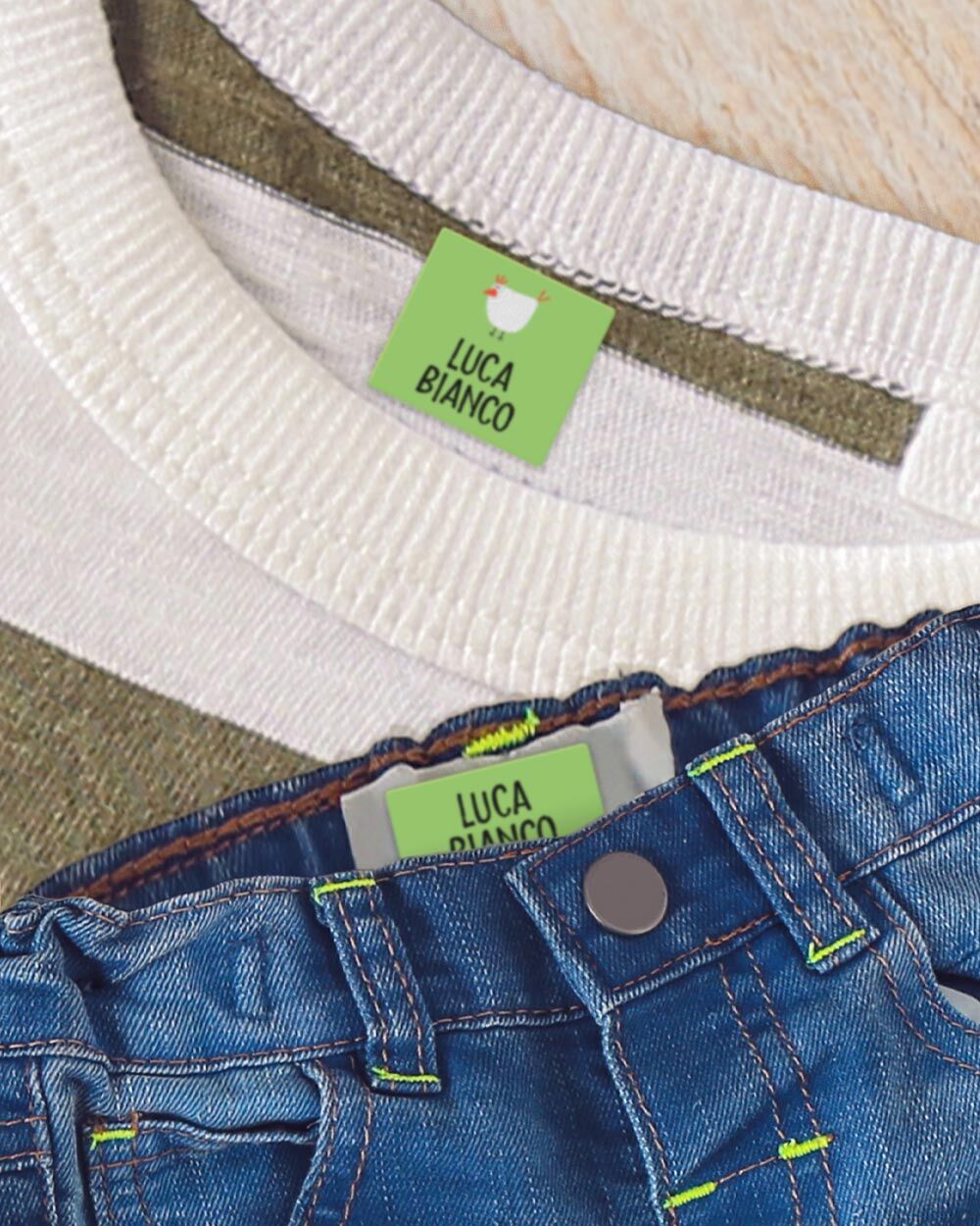 - Distingui i capi d’abbigliamento del tuo bambino: I capi d’abbigliamento dei bambini spesso si perdono o vengono confusi con quelli degli altri. Con le nostre etichette colorate e personalizzate, il guardaroba della tua bambina sarà sempre riconoscibile.