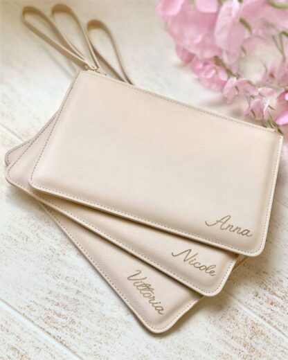 Set di 3 Pochette in Ecopelle Personalizzate con Nome in Oro: l’idea perfetta per un addio al nubilato in grande stile.