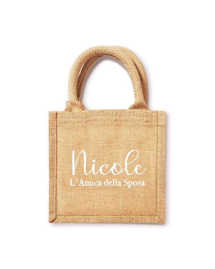 • Personalizzazione Unica: Nome e dedica personalizzabili su ogni borsetta.