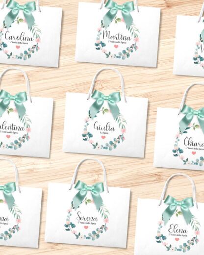 - Ricordo indimenticabile: Personalizzando ogni borsetta, la destinataria potrà conservare nel tempo la propria gift bag e ricordare i magici momenti passati assieme alle sue amiche.