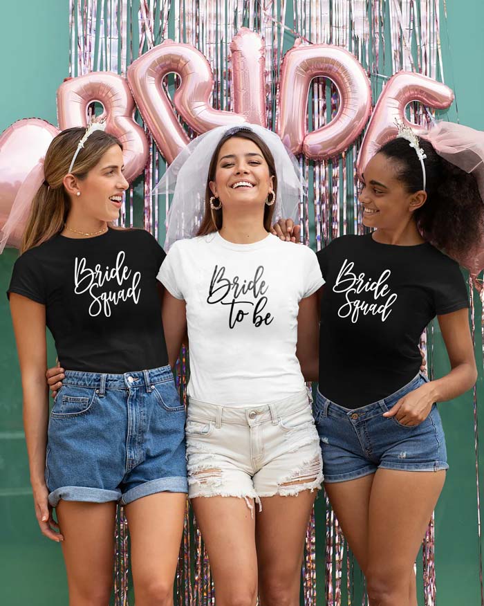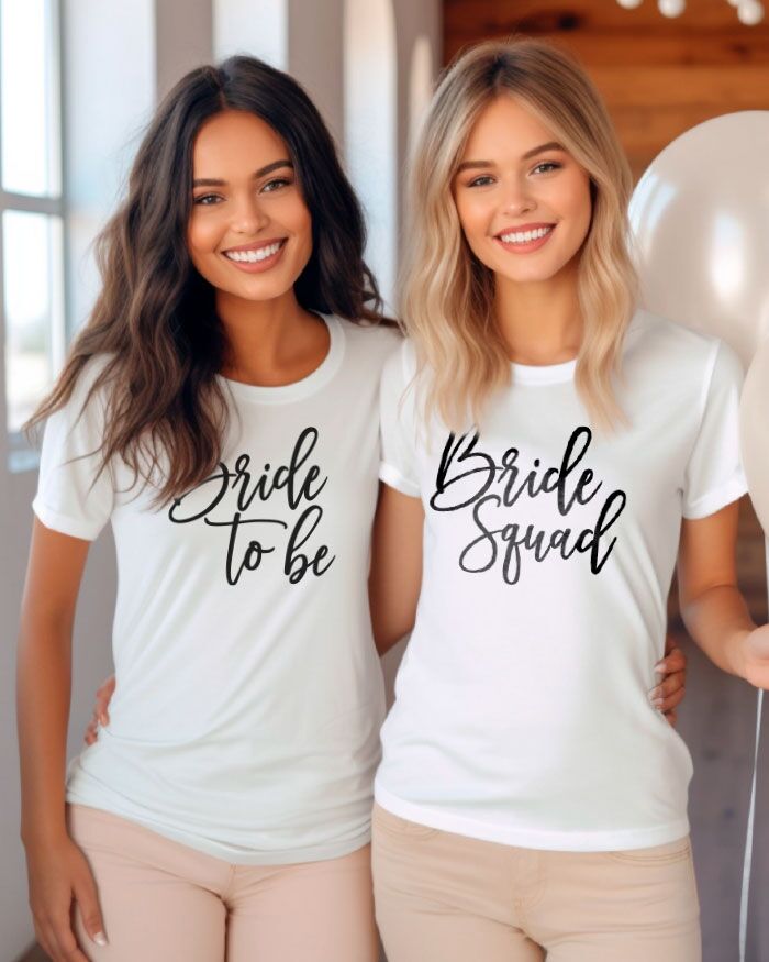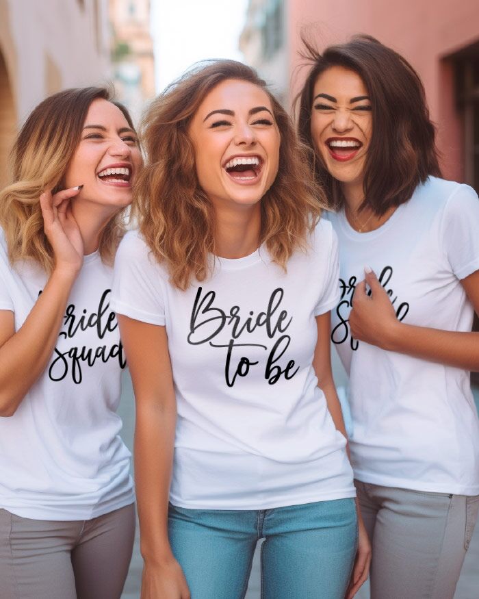 - Foto di Gruppo a Tema: Le nostre magliette rendono le foto di gruppo ancora più speciali. Con le scritte “Bride to Be” e “Bride Squad” sarai in grado di creare foto a tema che rimarranno come ricordo di questo giorno indimenticabile.