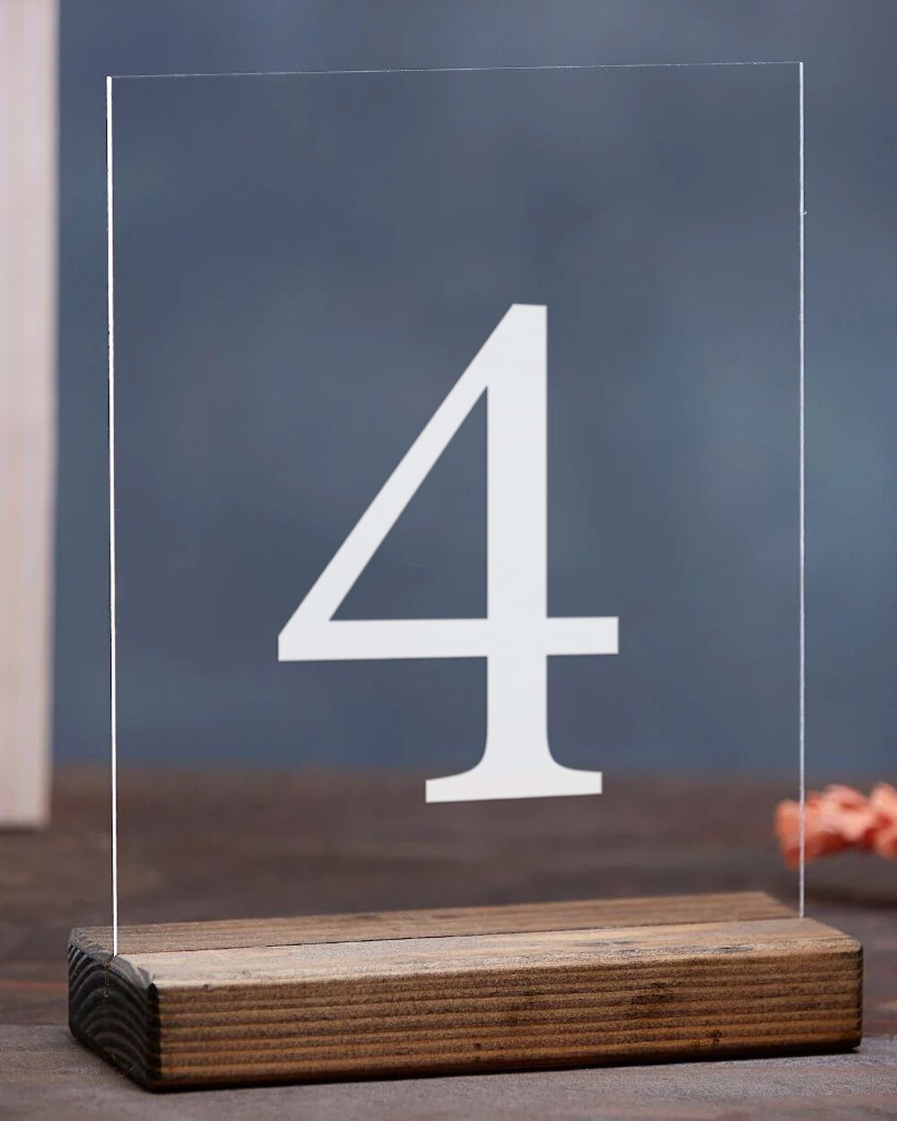 Set di 5 Targhette Segnatavolo in Plexiglass con Base in Legno Personalizzate: Raffinatezza e Funzionalità per il Tuo Matrimonio