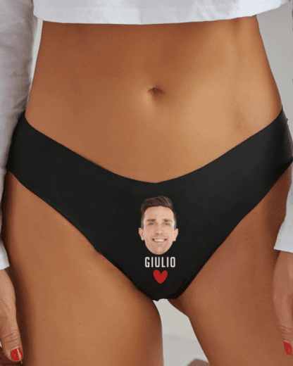 Sexy Slip Intimo Nero Mutandine da Donna con Retro in Pizzo e Personalizzabile con la Foto del Partner, Cuore e Nome – Idea Regalo di San Valentino Divertente e Hot per Lei
