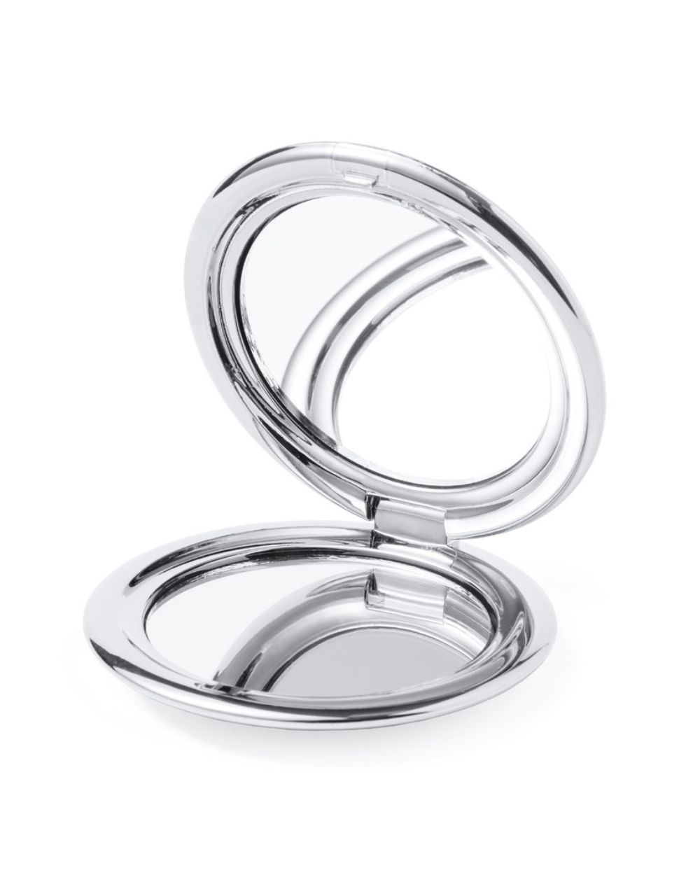 Specchio pieghevole con elegante finitura metallica. Con due specchi interni (ingrandimento 1X e 2X)