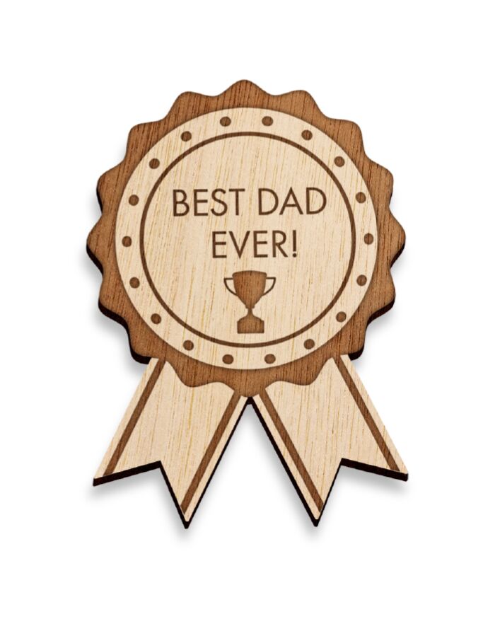 Spilla Coccarda in Legno Best Dad Ever – Miglior Papà di Sempre