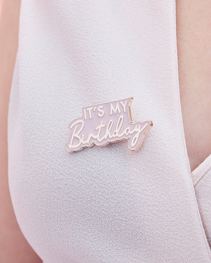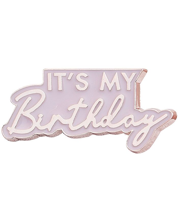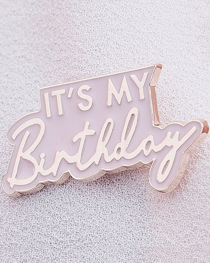 Spilla con la scritta “It’s My Birthday” nei colori del rosa e rose gold, perfetta per coronare le festeggiata nel giorno del suo compleanno! Indicata nei festeggiamenti particolari, è un modo carino e simpatico per conferire alla festeggiata le giuste attenzioni che si devono a chi festeggia il proprio compleanno.
