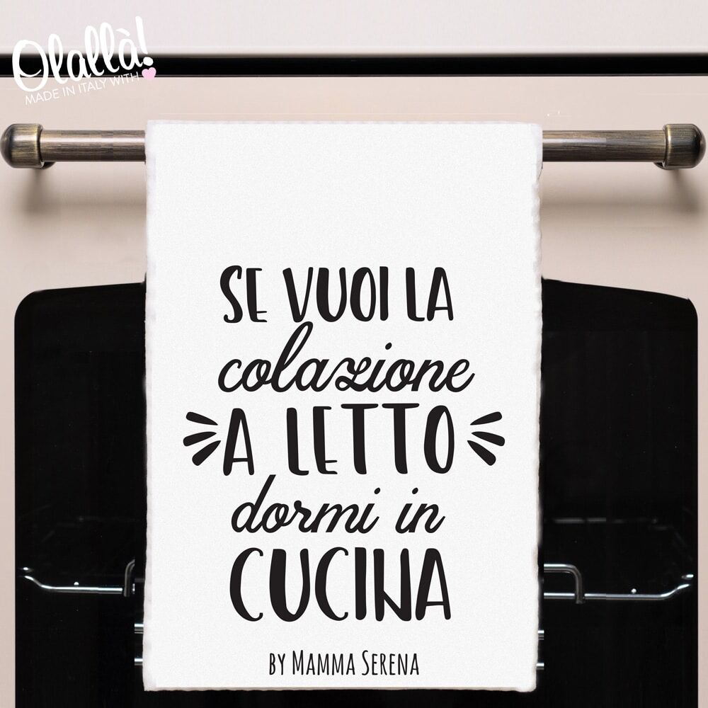 Esclusivo strofinaccio personalizzabile con la tua dedica. Tua mamma ripete spesso un motto? Fallo stampare su questo bellissimo strofinaccio per farle capire quanto apprezzi tutto quel che fa per te!
