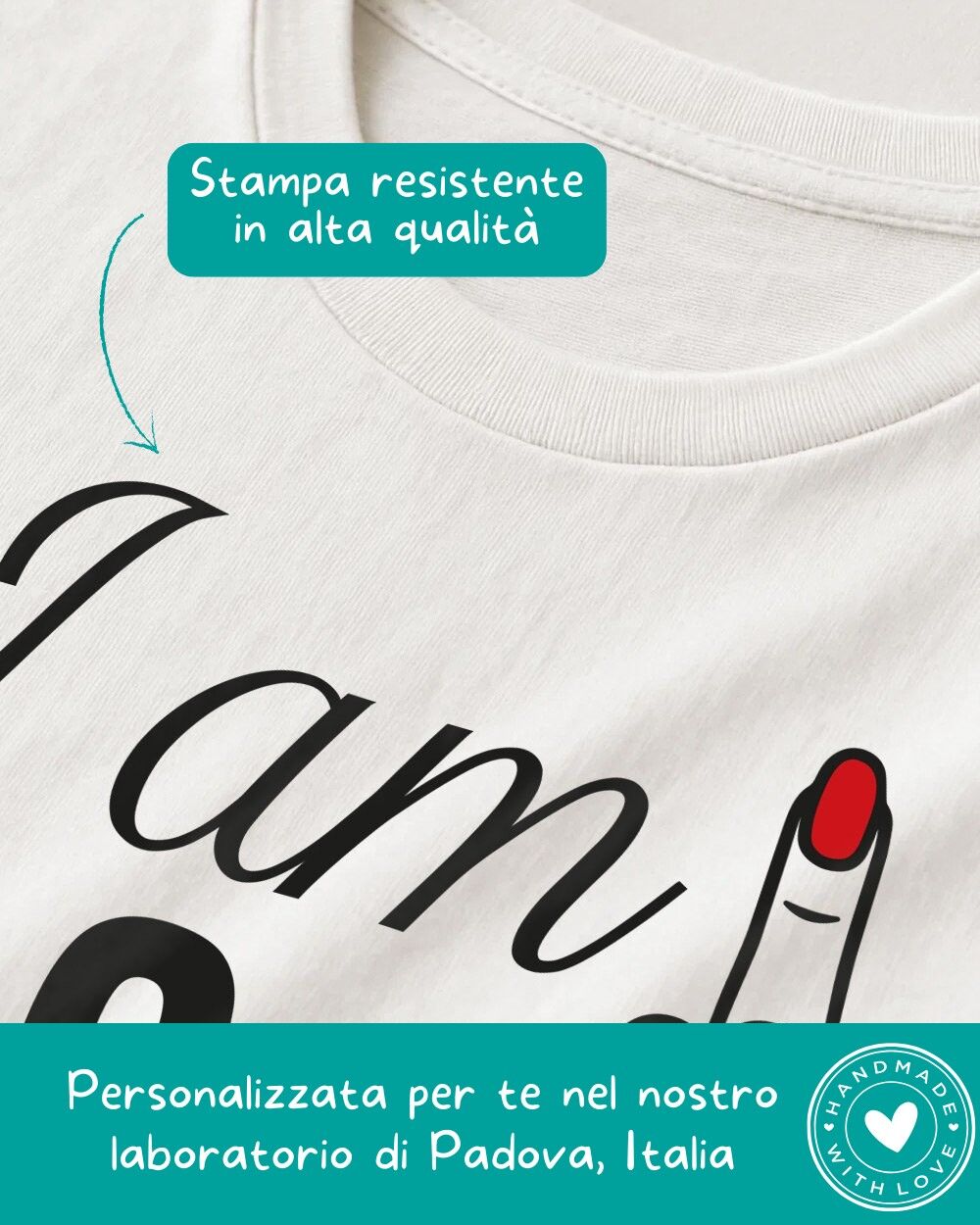 PERSONALIZZAZIONE: la t-shirt è personalizzabile con l’età compiuta, selezionandola tra le opzioni disponibili del menù a tendina. Il resto della grafica e la scritta “I am” rimangono standard.