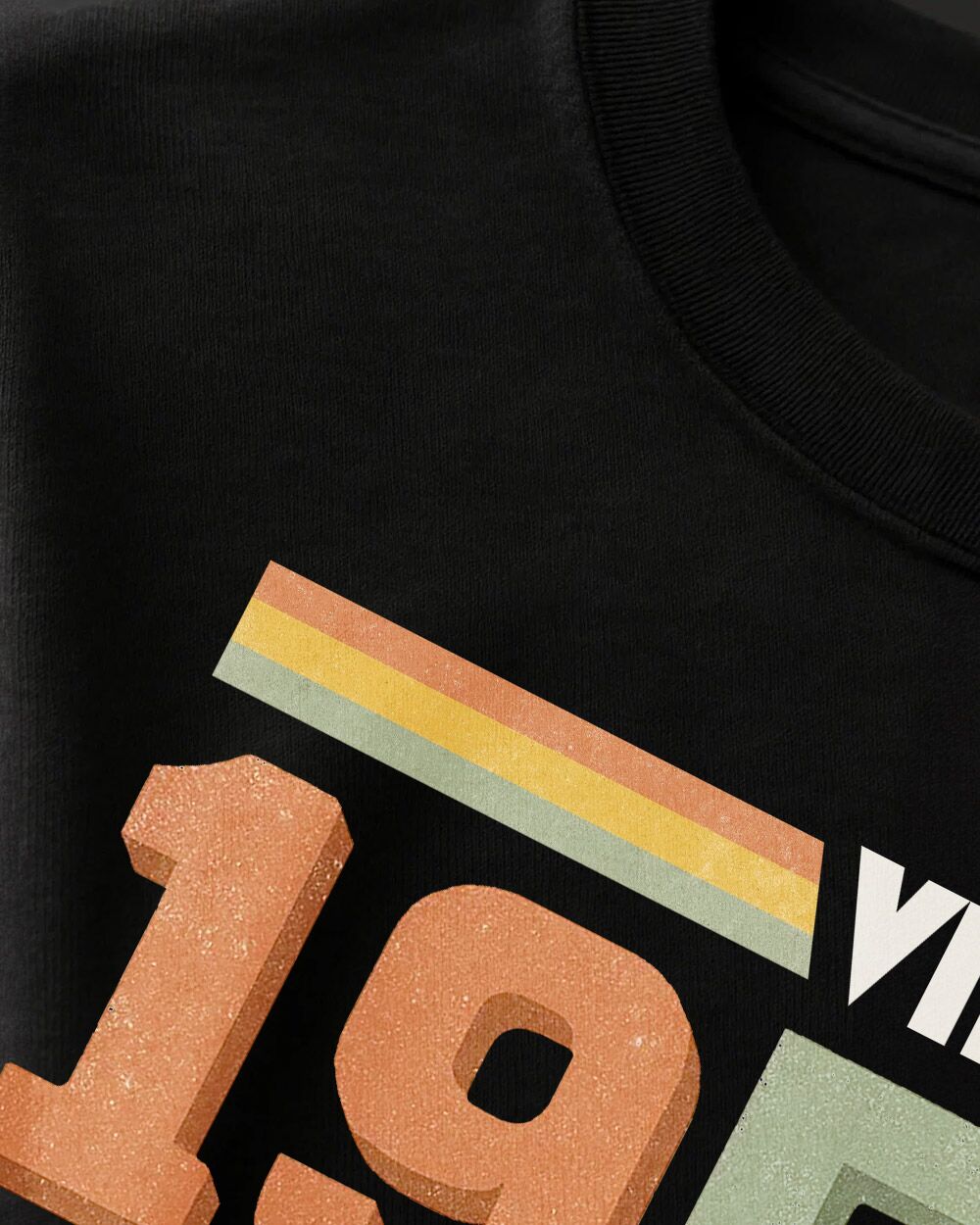 Questa t-shirt è personalizzabile con l’anno di nascita, trasformando un semplice capo d’abbigliamento in un ricordo indelebile. La grafica “Vintage – Edizione Limitata” include l’anno scelto, stampato in grande sul petto con uno stile rétro che richiama le grafiche anni ’70 e ’80.