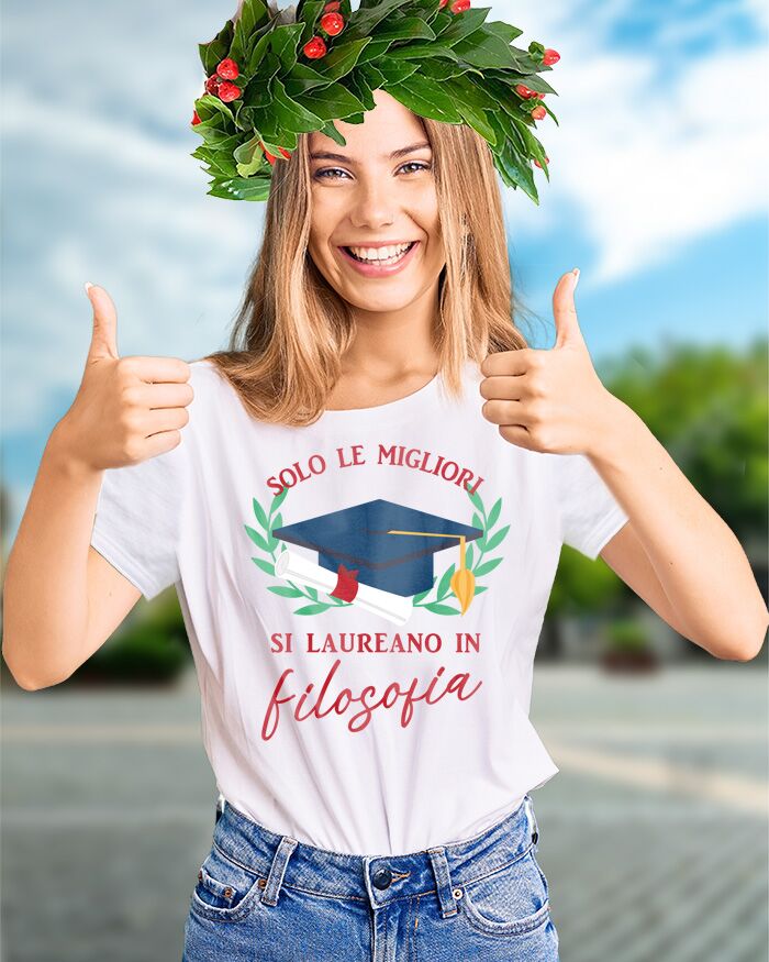 Spiritosa Maglietta con scritta “Solo le migliori si laureano in”, perfetta per essere regalata in occasione della laurea della vostra neo-dottoressa, che potrà festeggiare questo speciale traguardo con una T-Shirt che le ricordi scherzosamente che solo i migliori si laureano nella facoltà da lei scelta! Un modo davvero unico per festeggiare con allegria un percorso che ha regalato emozioni incomparabili.