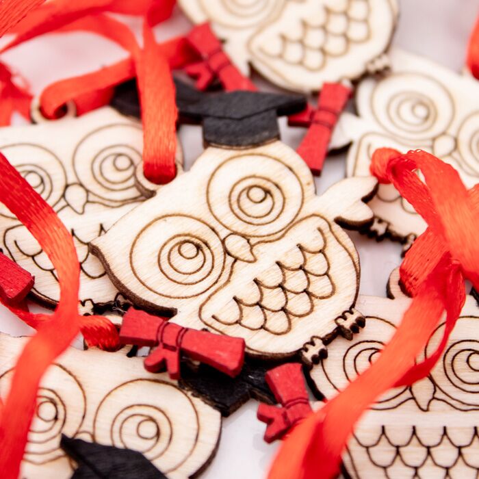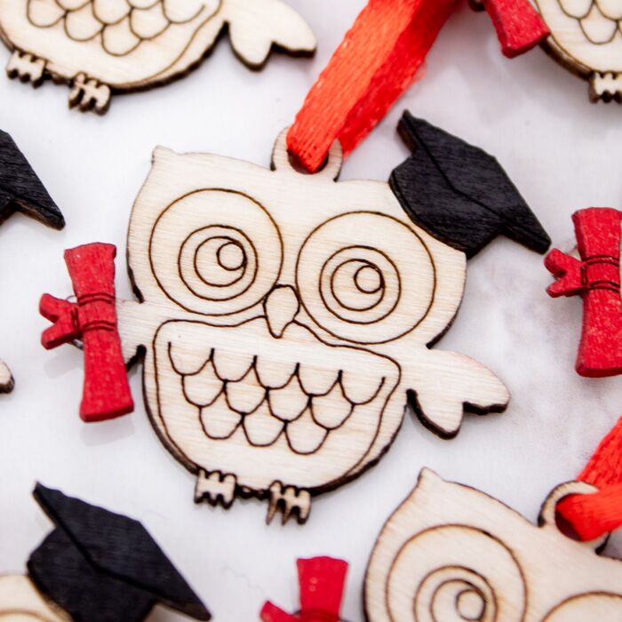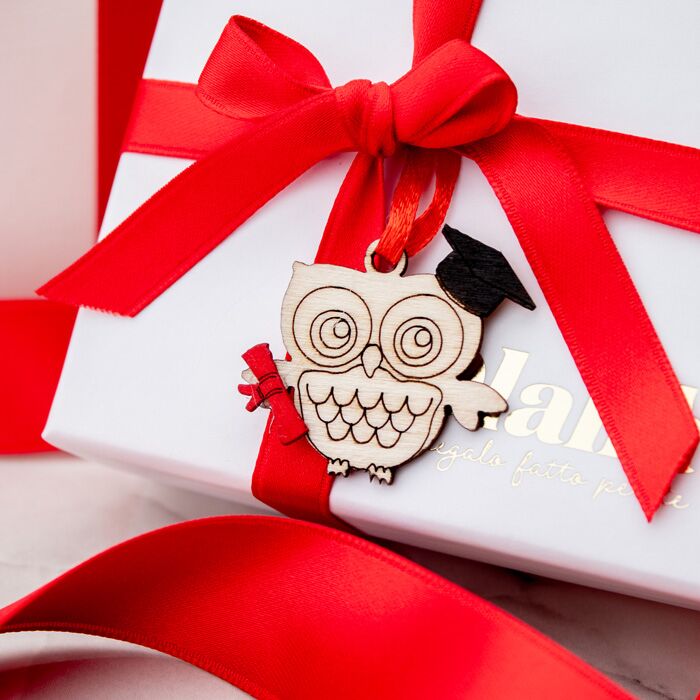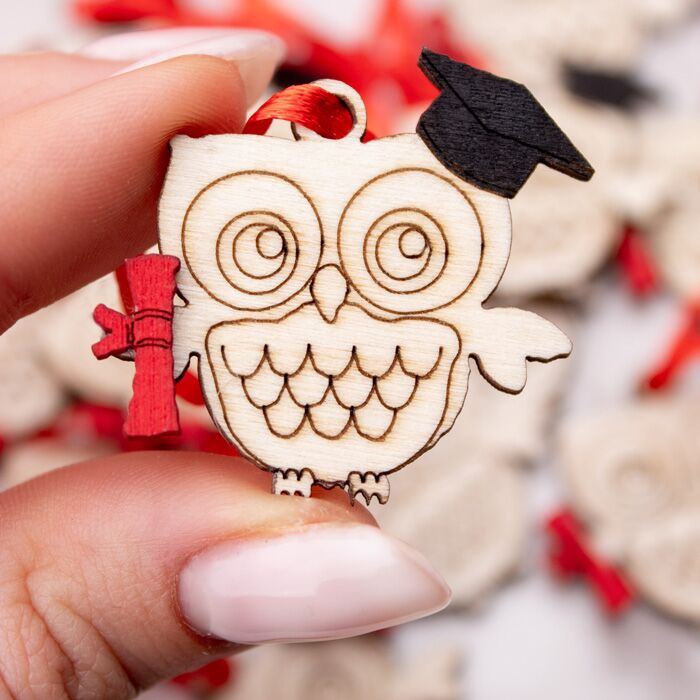 Bellissimo set di 20 tag in legno a forma di Gufo con cappello di laurea. Perfetti per essere usata come decorazione finale per la tavola della tua cerimonia oppure per completare le bomboniere della tua Laurea.