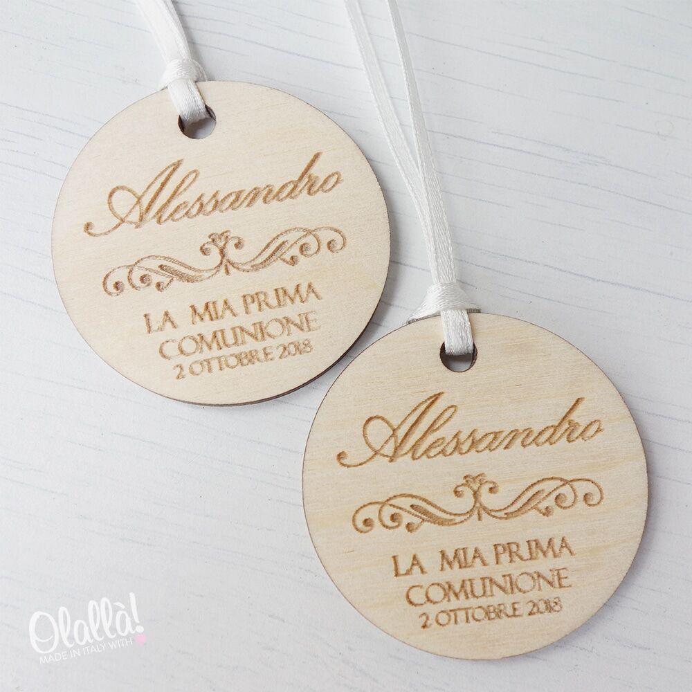 Tags in Legno Personalizzato con Nome, Decoro e Data – Bomboniera Prima Comunione