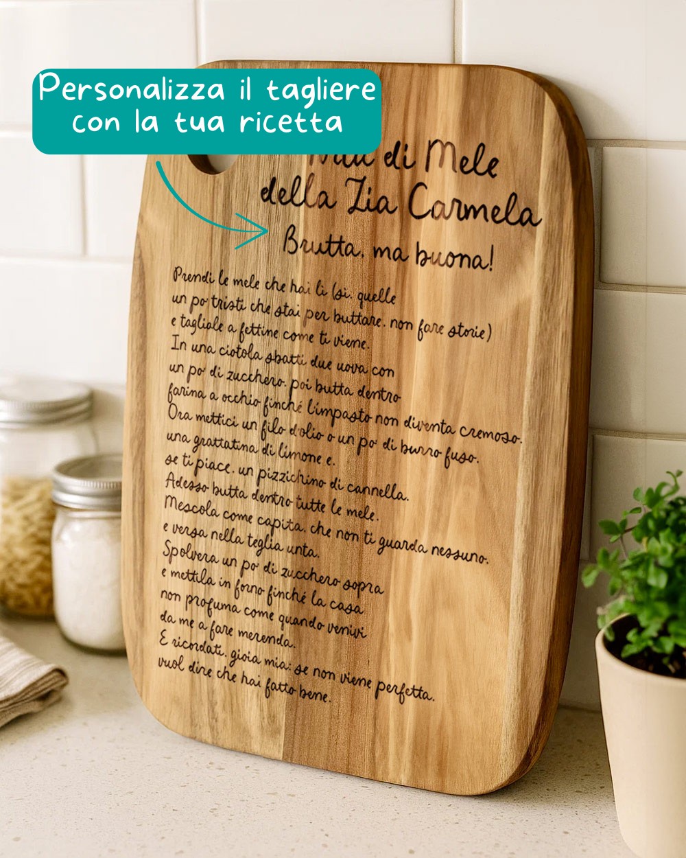 PERSONALIZZAZIONE: personalizzabile con la propria ricetta incisa a laser sul tagliere.