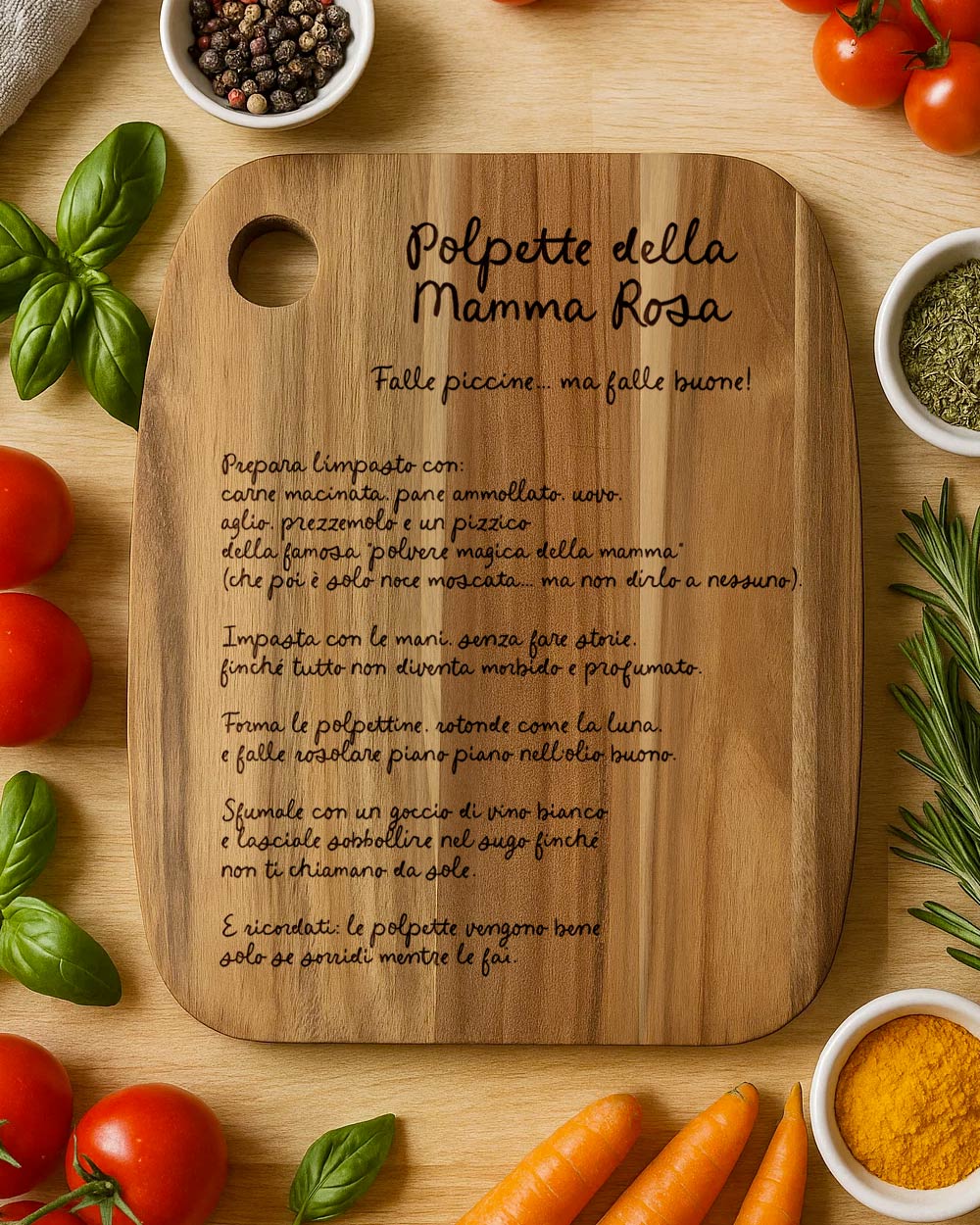 La vera magia di questo tagliere in legno personalizzato sta nella personalizzazione.