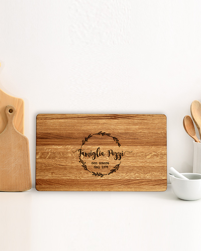 - Il tagliere è disponibile in due legni diversi: faggio, quercia.