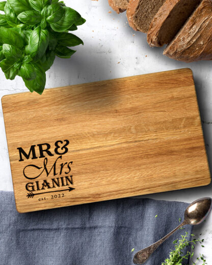 Tagliere Personalizzato con Incisione “Mr & Mrs” e Data – Idea Regalo Matrimonio
