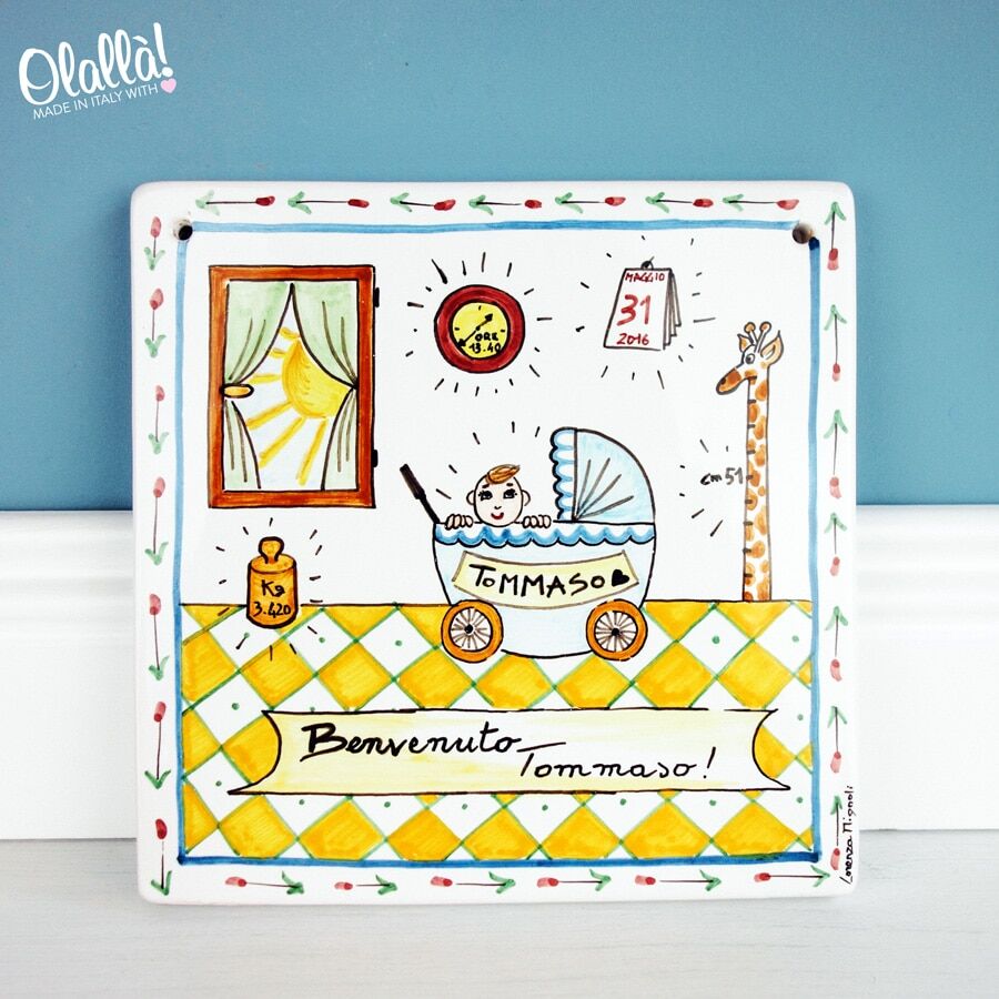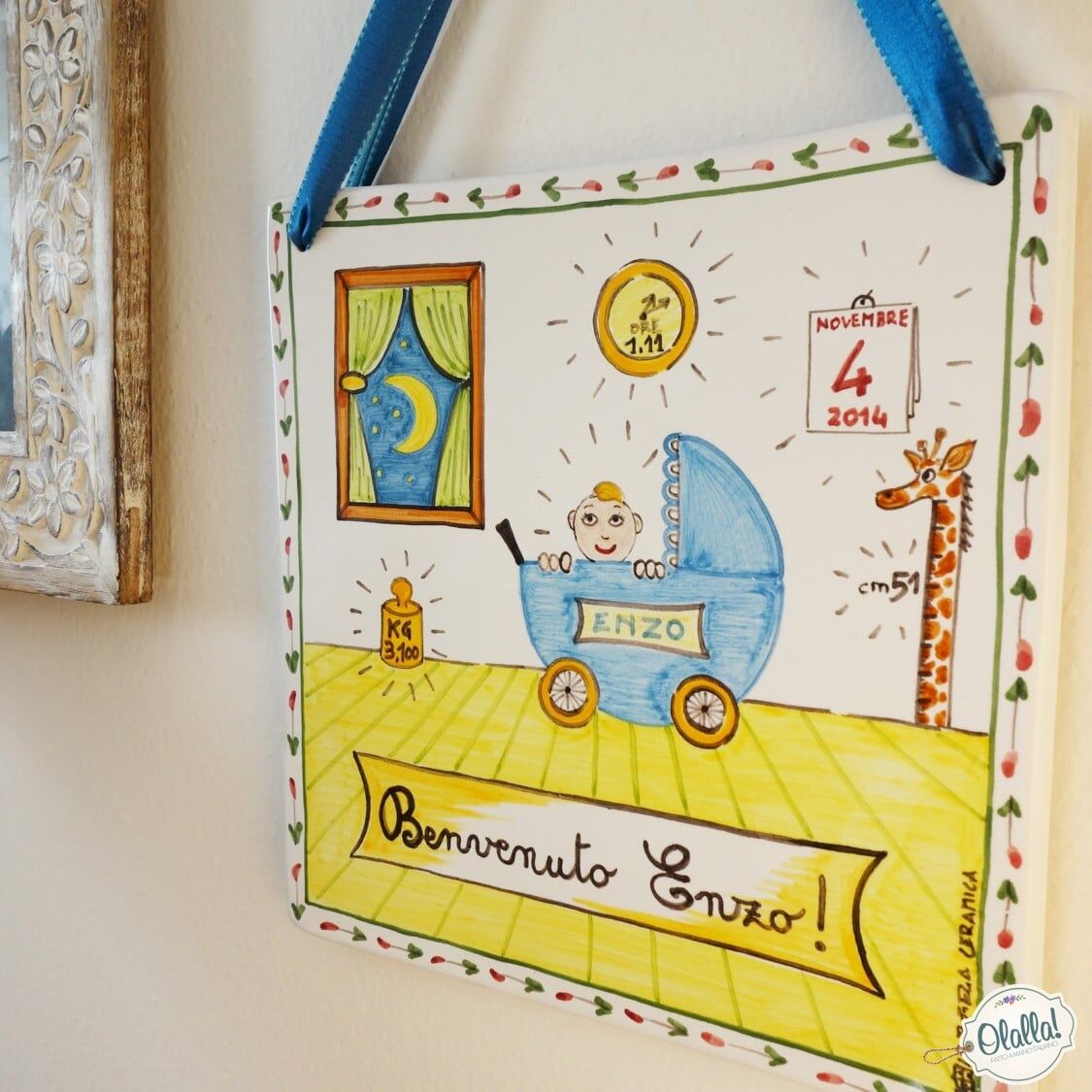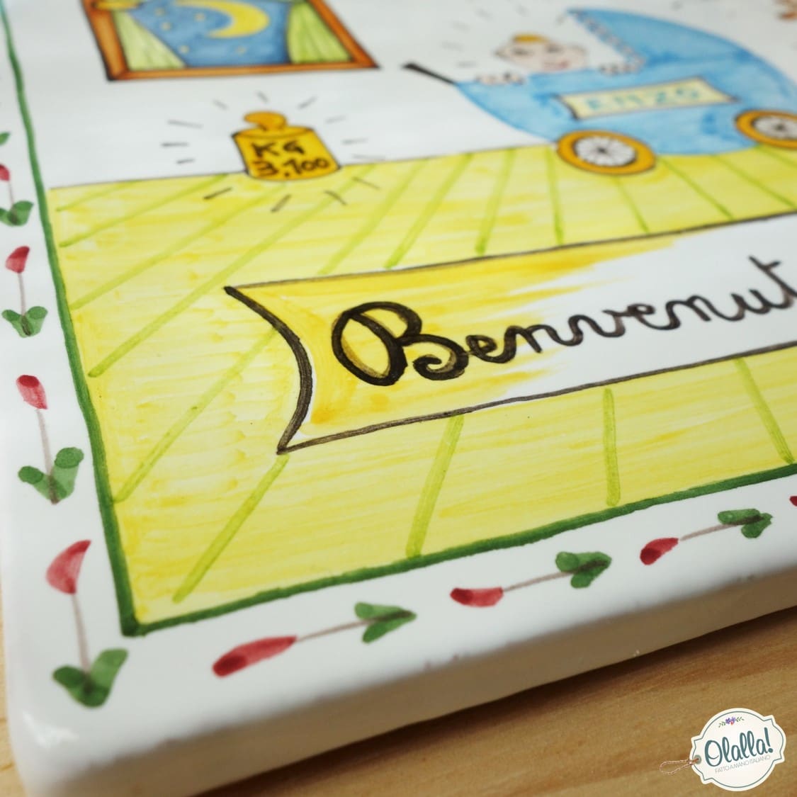 Targa in Ceramica Personalizzata per Annuncio Nascita Dipinta a Mano