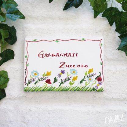 Targhetta con Nome di Famiglia in Ceramica con Fiori al Vento – Decorazione Casa