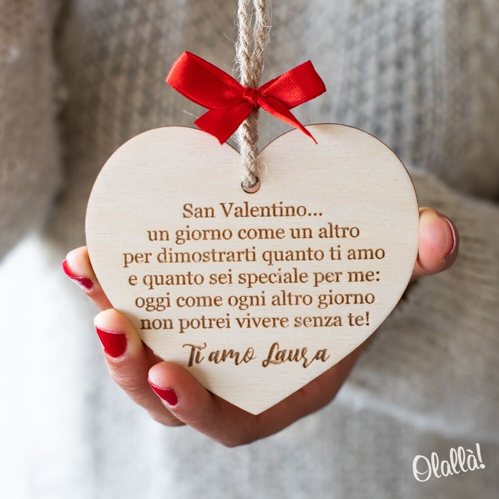 Splendida targhetta a forma di cuore in legno di betulla personalizzabile con il tuo messaggio e la tua dedica. Un dolce regalo d’amore per celebrare e ricordare San Valentino o il giorno del vostro anniversario in modo unico e speciale.