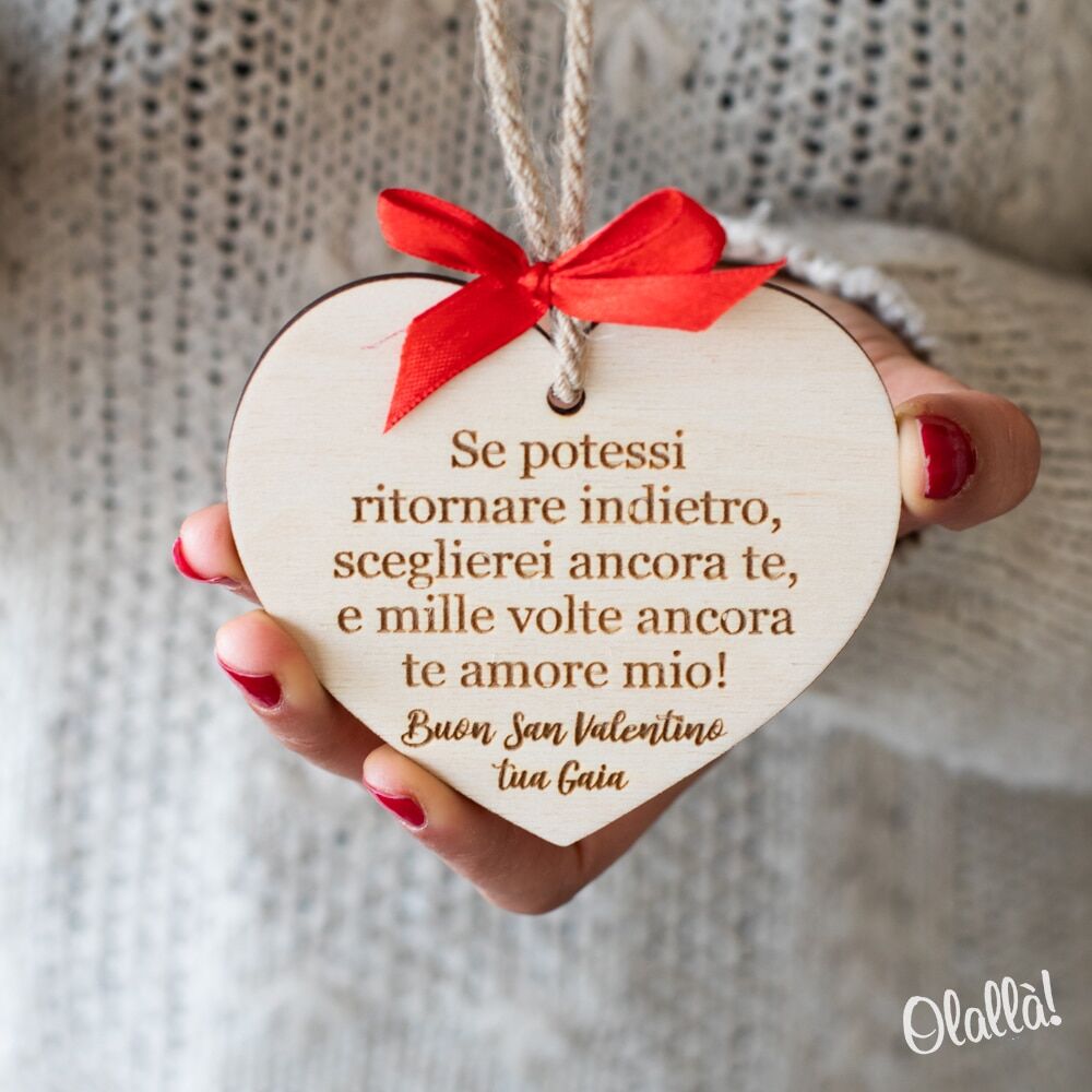 Romantica targhetta a forma di cuore in legno di betulla personalizzabile con la tua dedica. Un regalo speciale per il tuo lui o la tua lei nel giorno più romantico dell’anno: San Valentino! Un modo originale per ricordare alla tua dolce metà che sei pronto a sceglierla giorno dopo giorno.