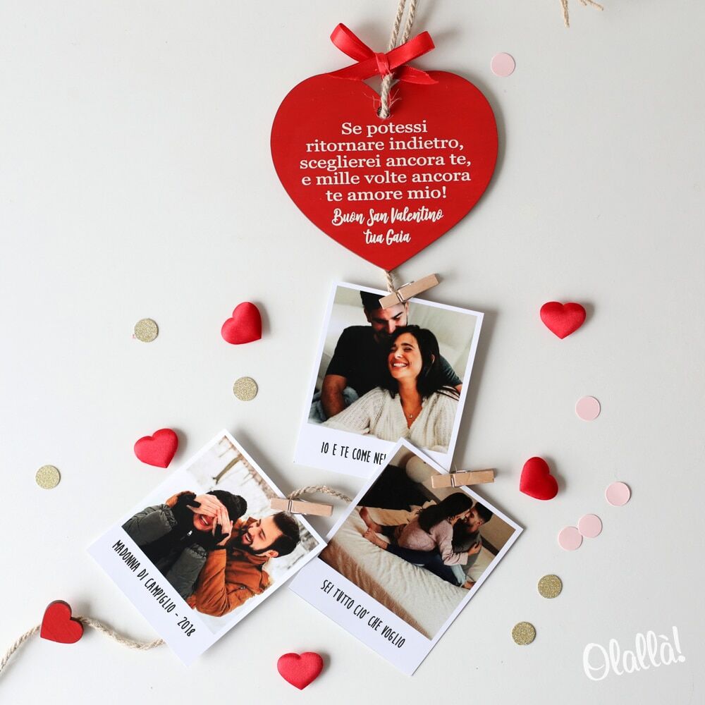 Splendida targhetta appendi foto in legno a forma di cuore, personalizzabile con la l’incisione delle tue parole. La targhetta è provvista di un cordino in juta e 3 piccole mollette in legno che puoi usare per appendere le foto che hai già a casa. In alternativa, se preferisci la comodità, provvederemo noi a stamparle per te su un cartoncino liscio in stile polaroid! E per dare un tocco davvero speciale puoi aggiungere la tua dedica sotto ogni foto. Puoi caricare un massimo di 3 foto ma se ne desideri di più, contattaci a servizioclienti@olalla.it. Saremo felici di accontentarti!