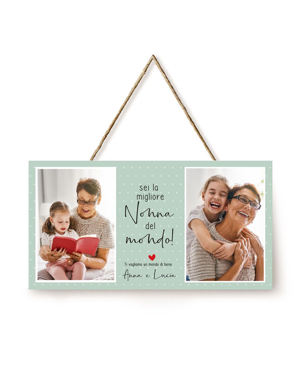 Nonni: i primi insegnanti di vita, i custodi delle storie di famiglia, e spesso il cuore affettuoso che tiene unite le generazioni. Per celebrare questo legame unico, abbiamo creato la Targhetta in Legno Personalizzata, una dedica speciale e piena d’amore che puoi realizzare per entrambi i nonni, solo per la nonna o per il nonno. È un pensiero che diventa simbolo tangibile di affetto, un modo per dire “Vi voglio bene” ogni giorno.
