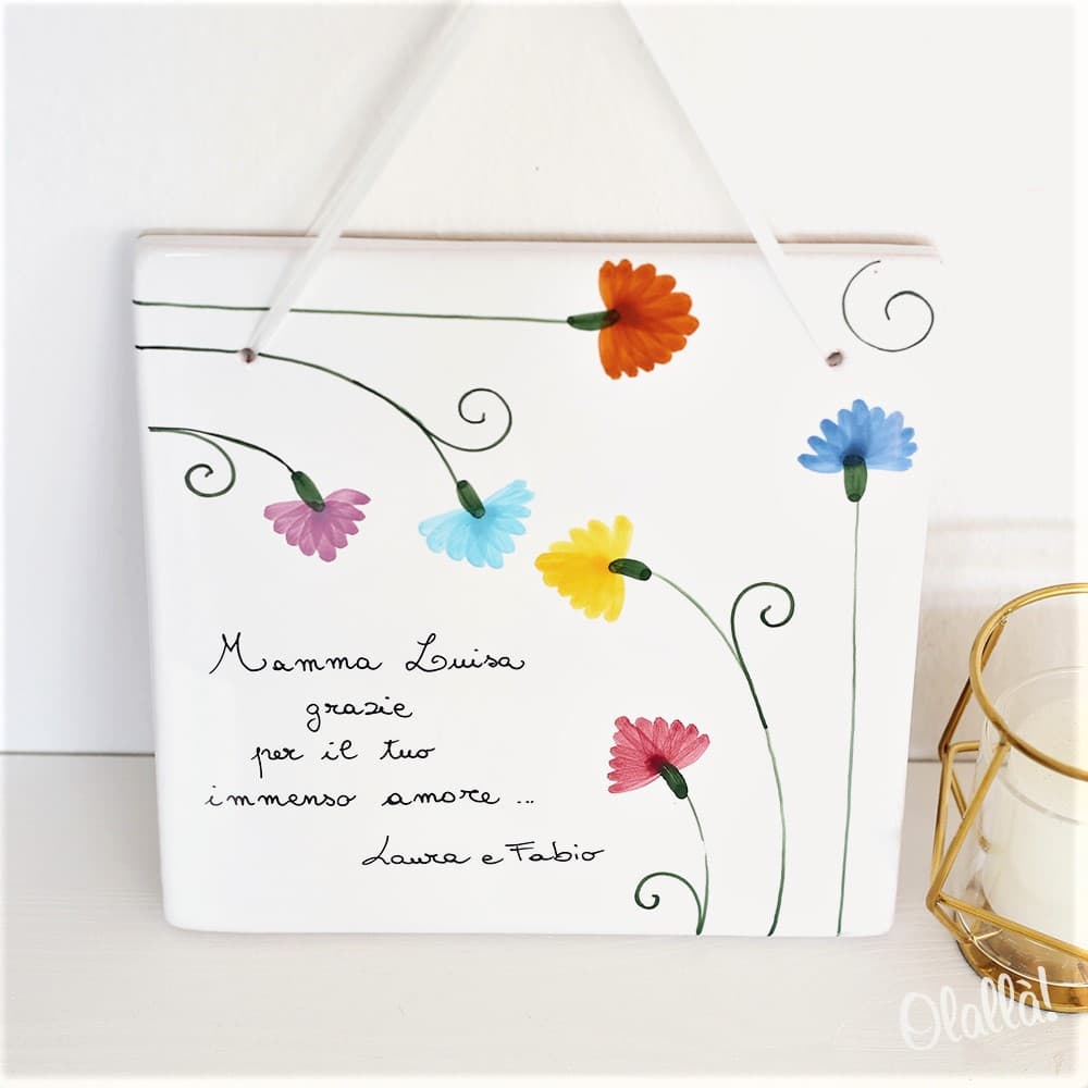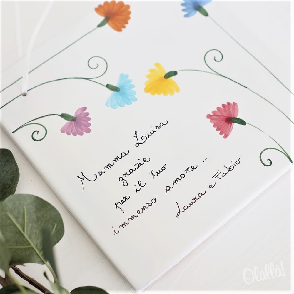 Queste targhe in ceramica possono essere personalizzate con la dedica che preferisci. Se desideri apportare ulteriori modifiche, scrivici a servizioclienti@olalla.it e ti metteremo in contatto con la nostra abile artigiana per ulteriori personalizzazioni!
